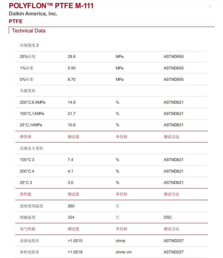 Lámina de junta de revestimiento de PTFE DAIKIN M-111 de bajo peso molecular y baja fricción, resina de suspensión modificada