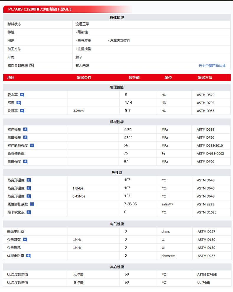 PC/ABS C1200HF/saber, aplicaciones eléctricas y electrónicas básicas, aplicaciones automotrices, grado de moldeo por inyección resistente al calor