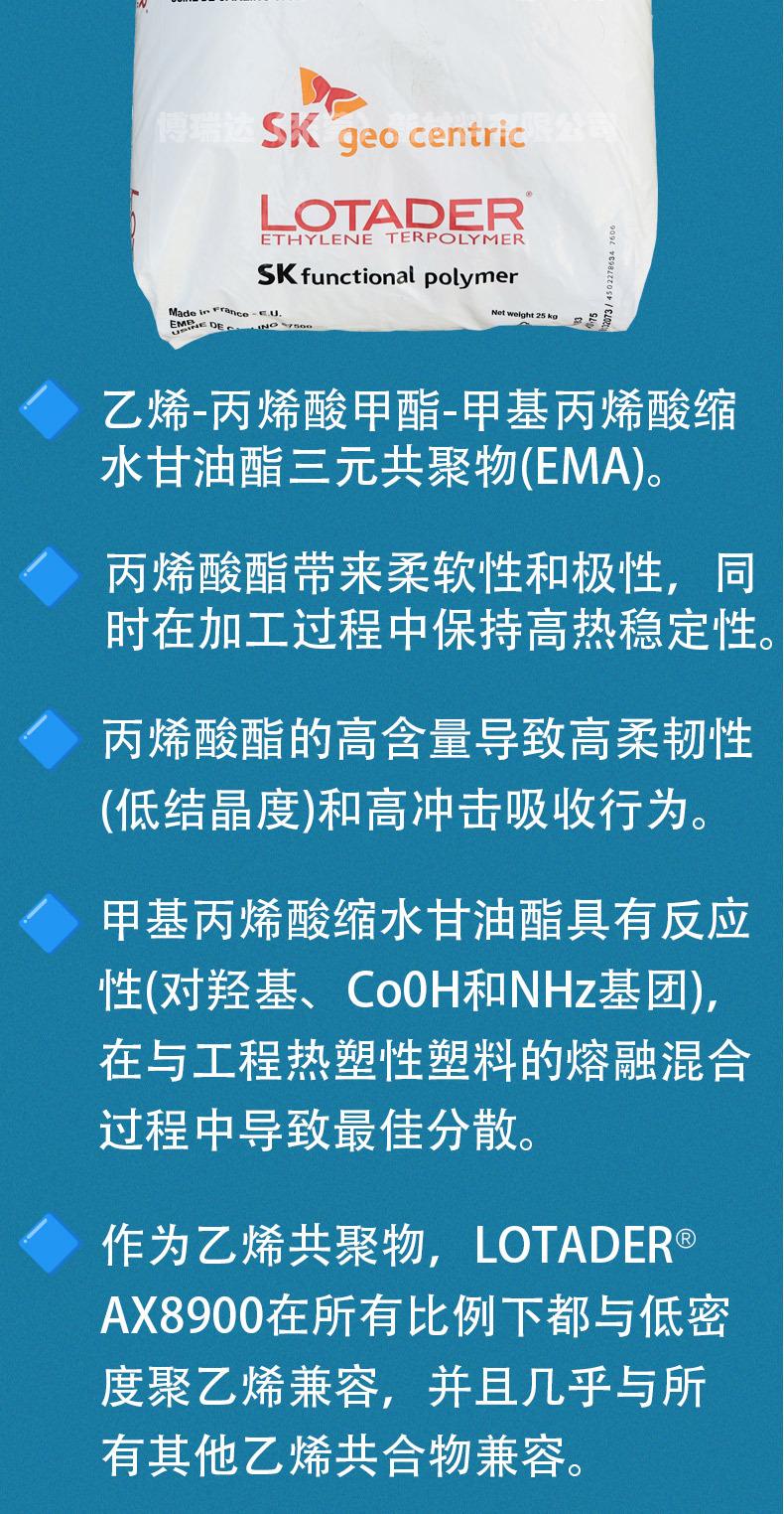 Ema Corea del Sur SK polímero funcional EMAax8900 fábrica cabello liso solvente de fase polar fuerte Arkema AX8900