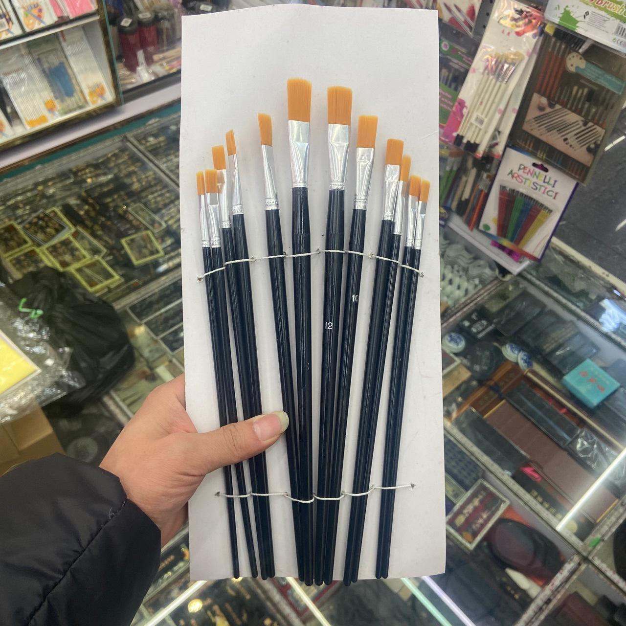 Venta directa de fábrica transfronteriza superventas cepillo de varilla larga lana de nailon 12 cabezales planos traje de varilla de plástico de bambú al por mayor