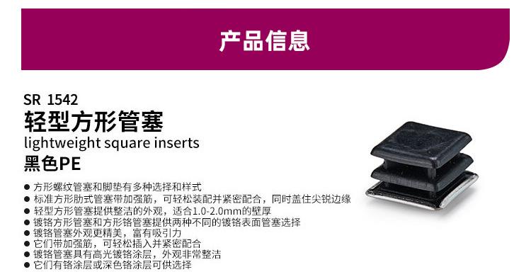 Tapón de tubería de PE de plástico negro de sublimación ESSENTRA con especificaciones completas al por mayor SR1542 Tapón de tubería cuadrado ligero
