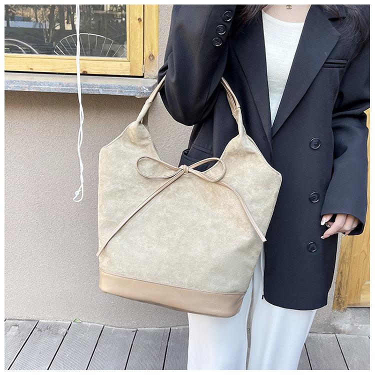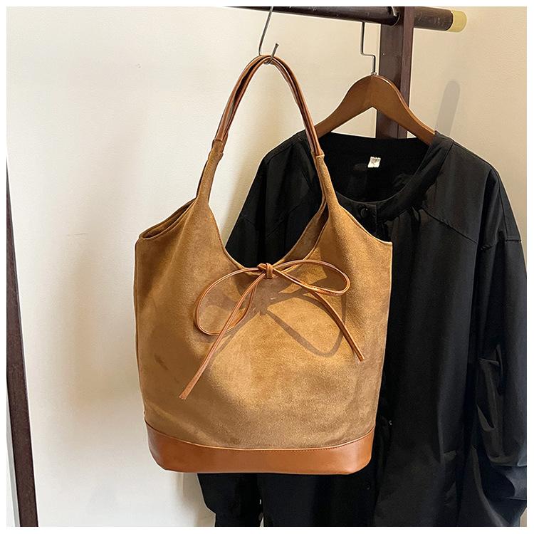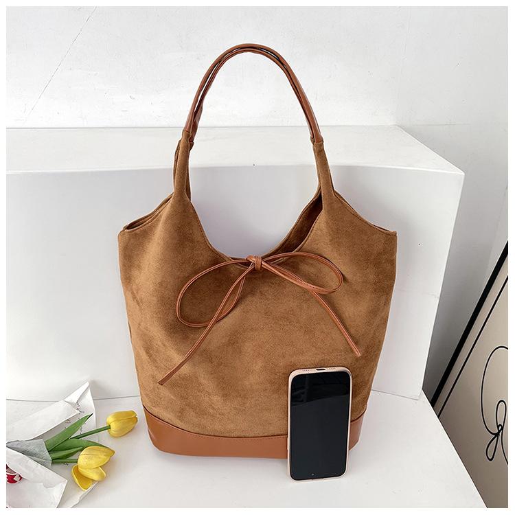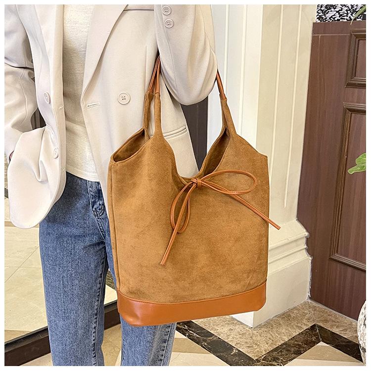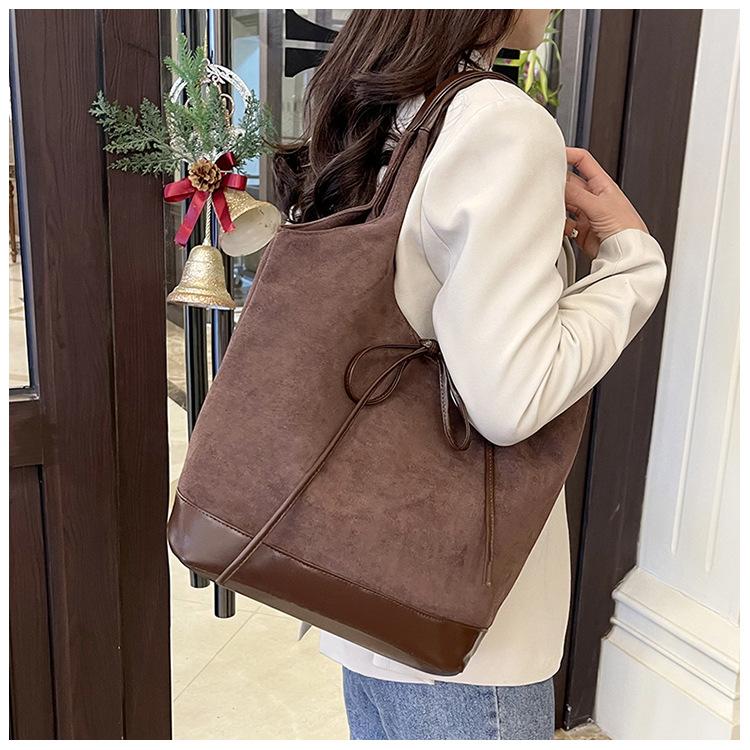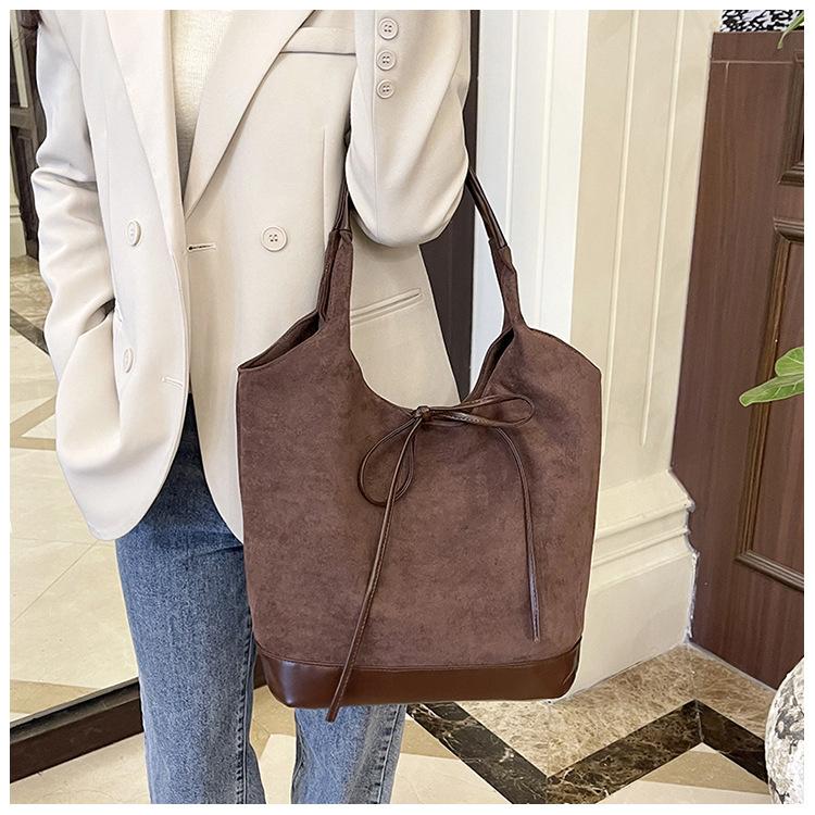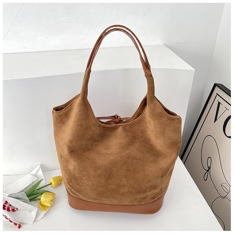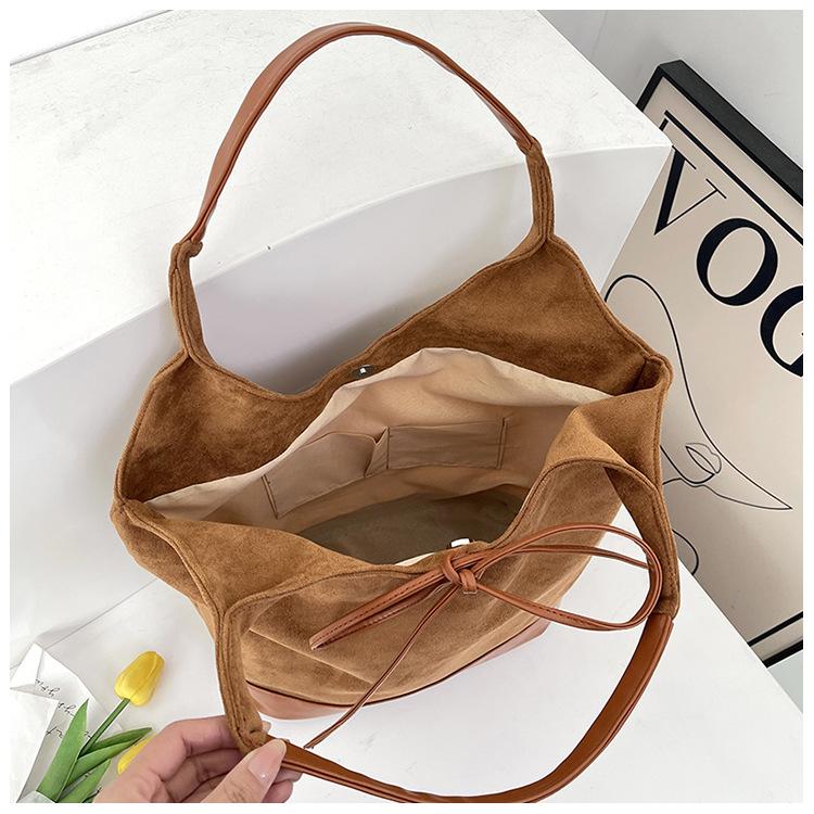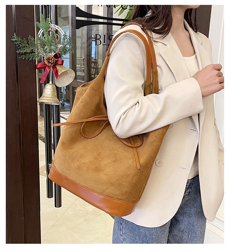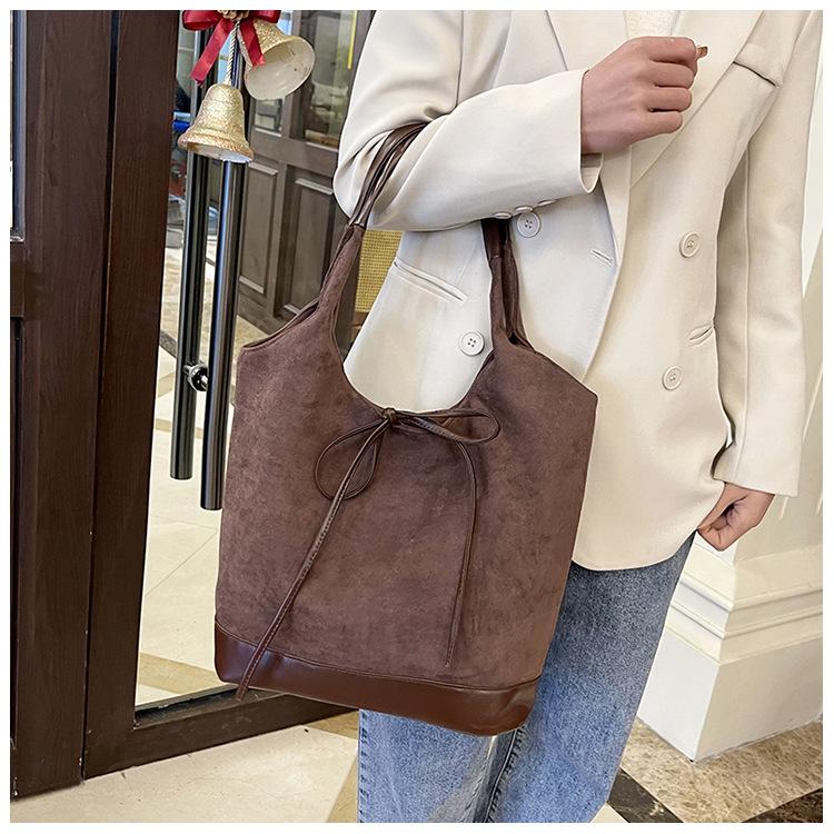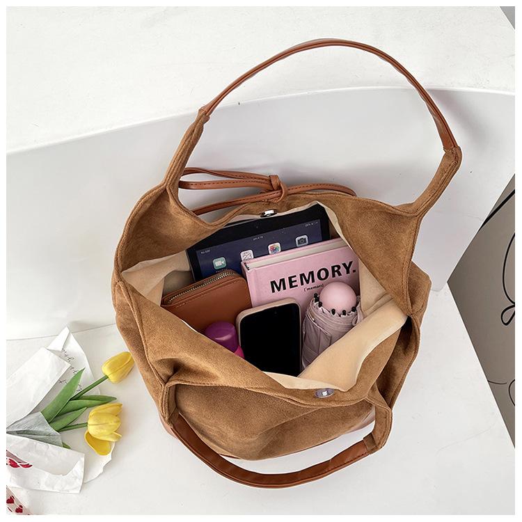 Bolso informal de gran capacidad para mujer, bolso de hombro de ante, bolso de mano portátil, otoño e invierno, 2024