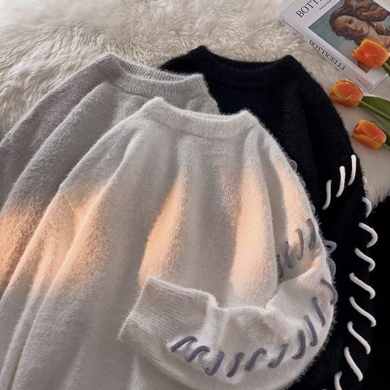 Suéter para hombre de moda de invierno de marca de diseño, suéter grueso de cuello redondo cálido para jóvenes, pareja, otoño e invierno, suéter de manga larga