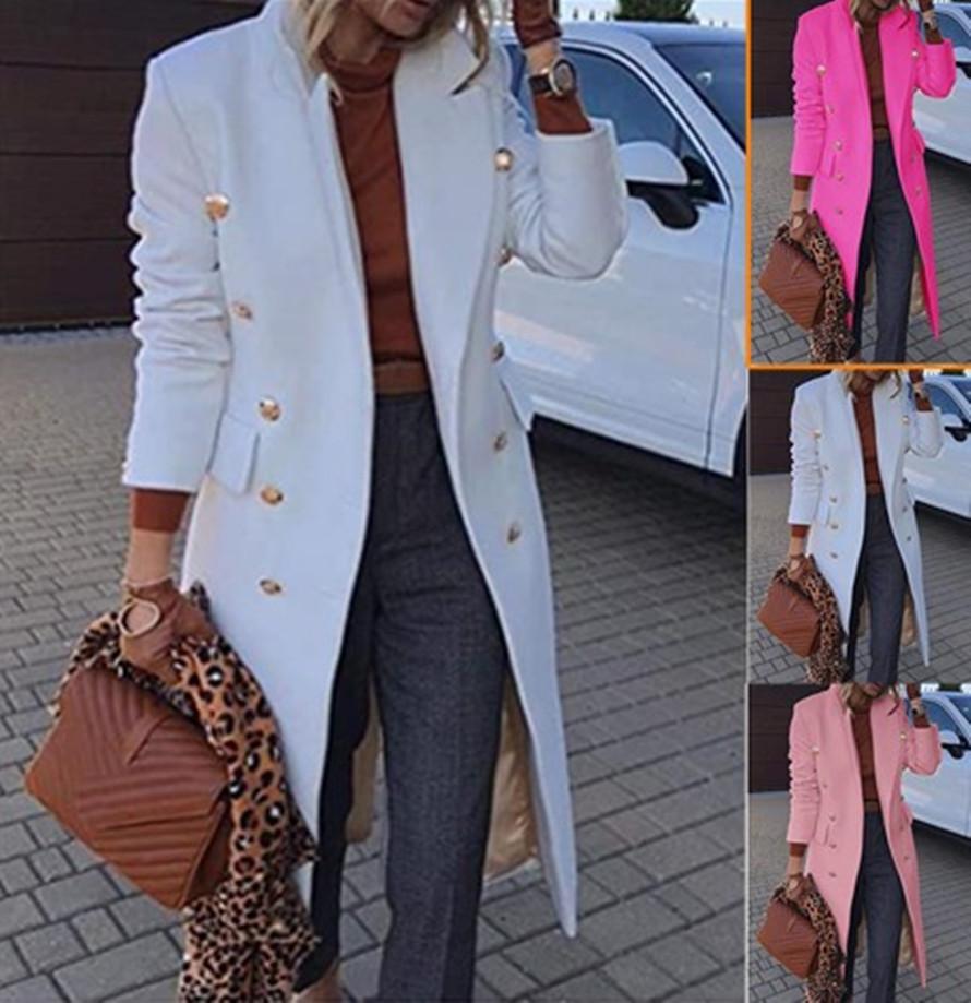 Abrigo de Lana de Largo Medio para Otoño e Invierno de Comercio Exterior 2022 para Mujer, Abrigo de Lana con Múltiples Botones
