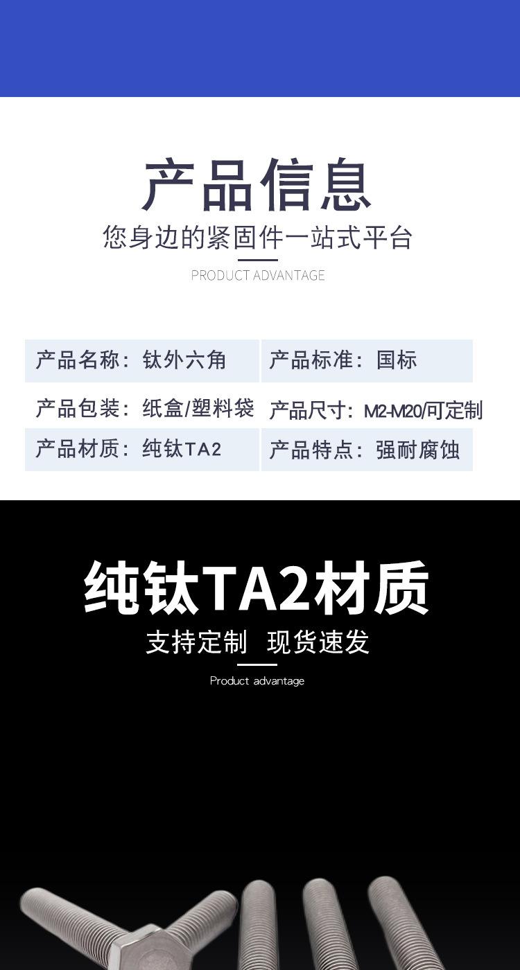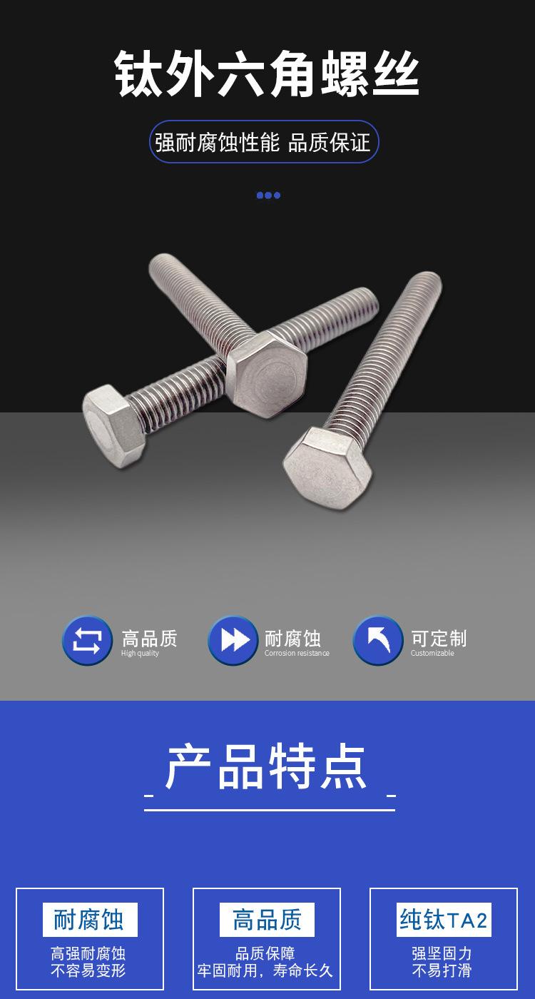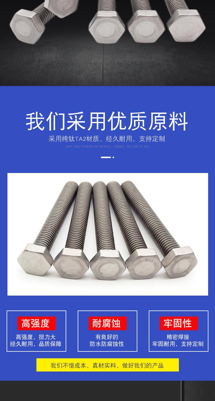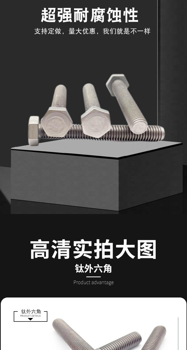 Perno de Titanio M18 Cabeza Hexagonal DIN933 Perno de Titanio Hexagonal Externo Aleación de Titanio TA2 Resistente a la Corrosión Resistente a los Ácidos Tornillo de Titanio Puro