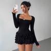 Vestido con volantes y abertura entallada de manga larga con capucha para mujer, tendencia de moda transfronteriza europea y americana de verano 2025