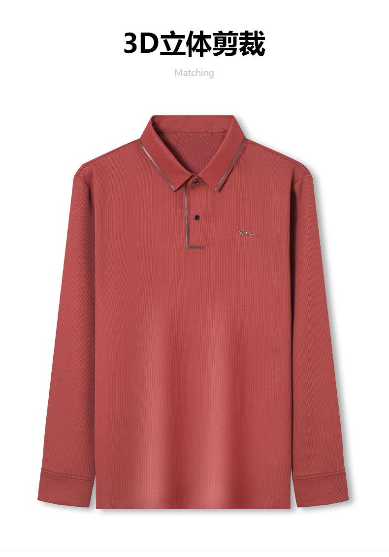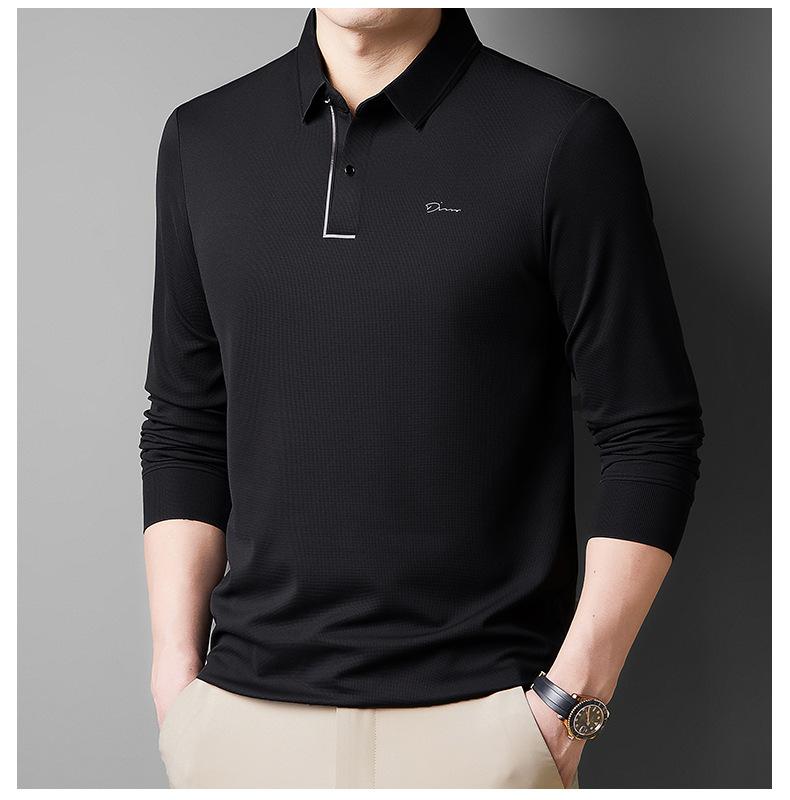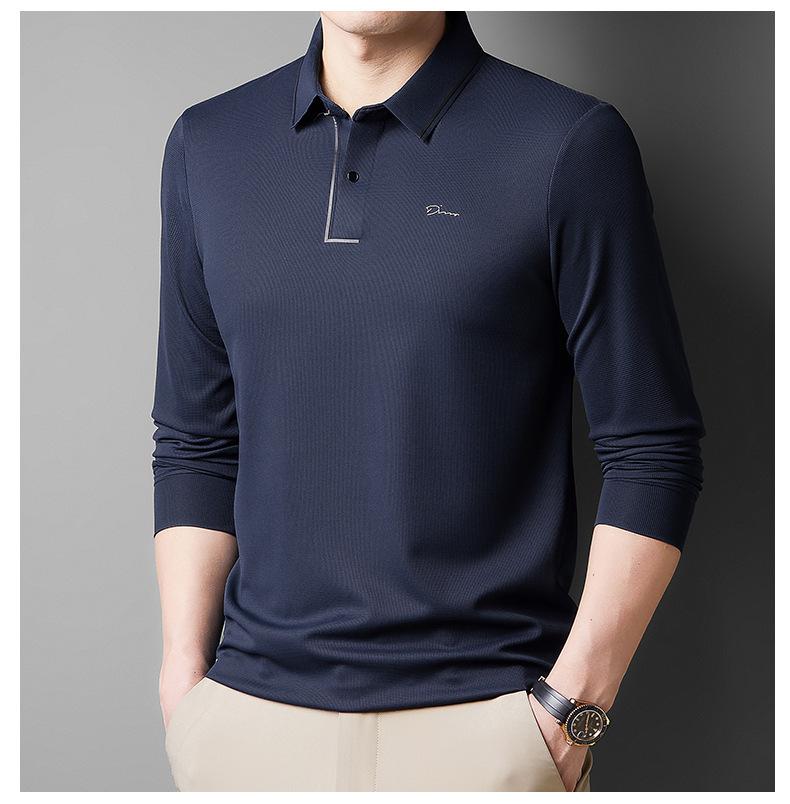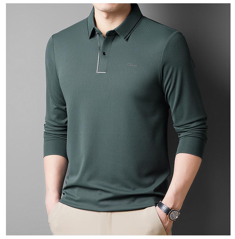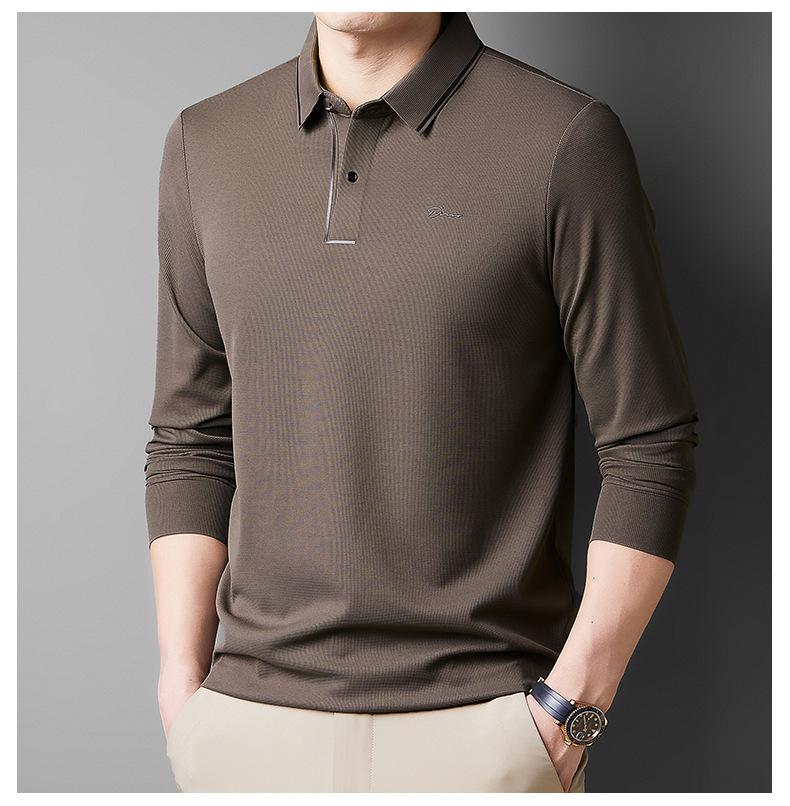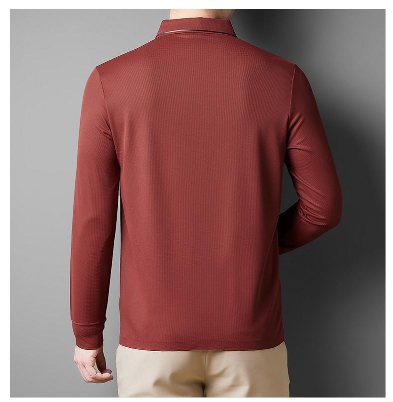 2025 Primavera Nuevo Polo de Manga Larga para Hombre Color Sólido Mediana Edad Elástico Transpirable Solapa Casual Camiseta de Hombre al Por Mayor