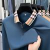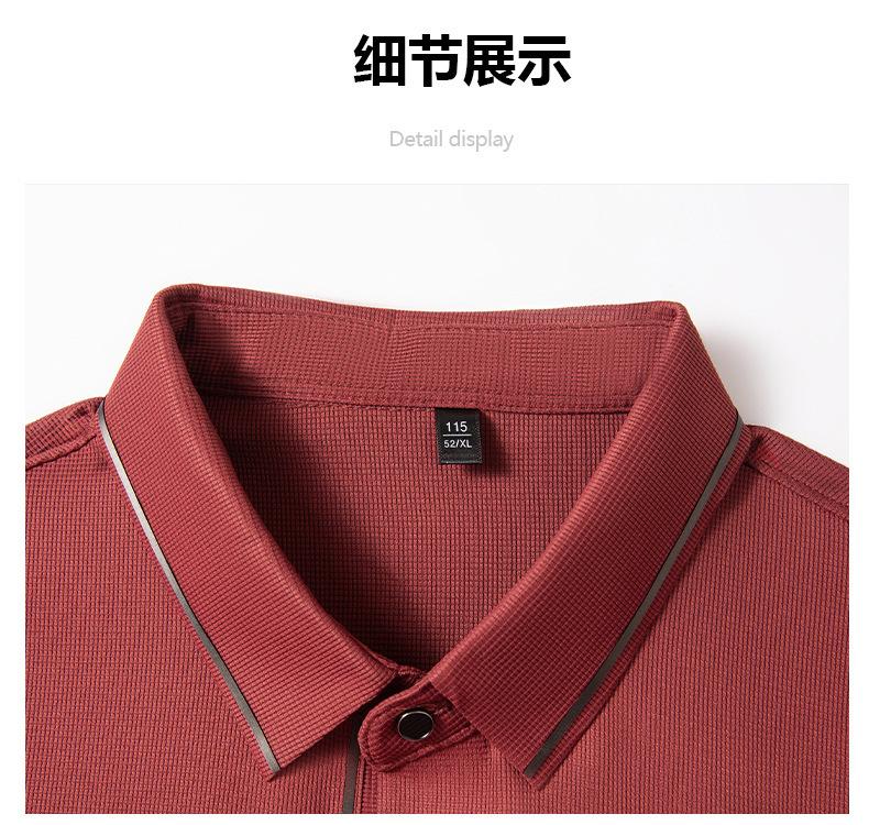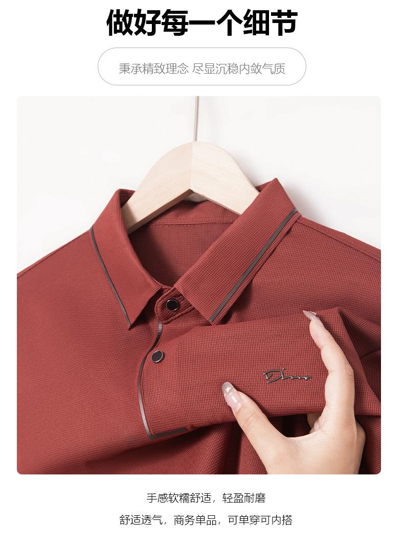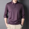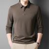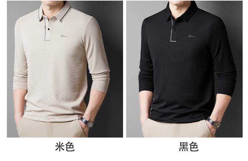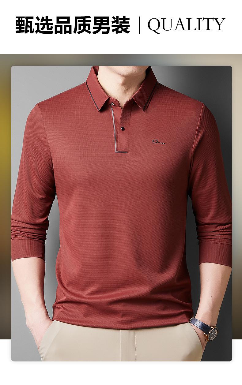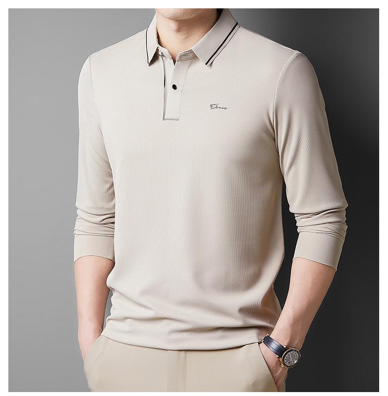 2025 Primavera Nuevo Polo de Manga Larga para Hombre Color Sólido Mediana Edad Elástico Transpirable Solapa Casual Camiseta de Hombre al Por Mayor