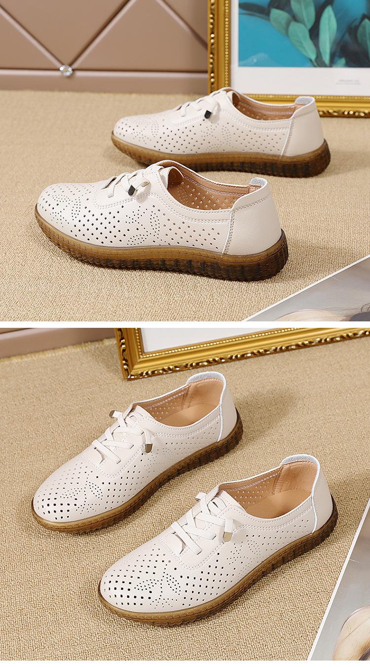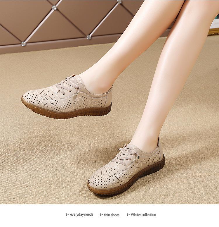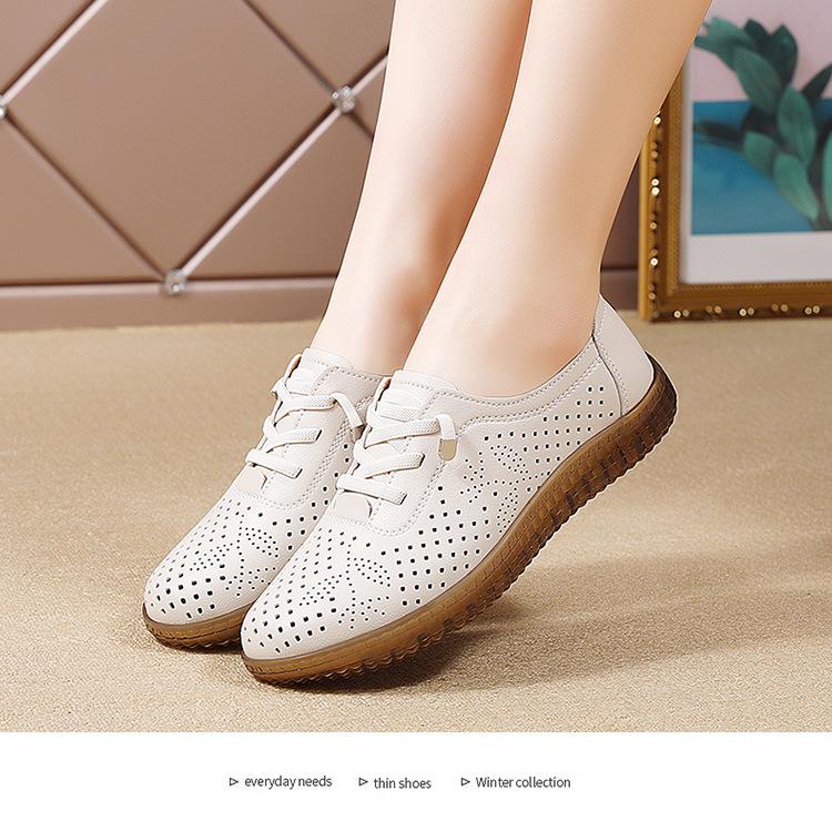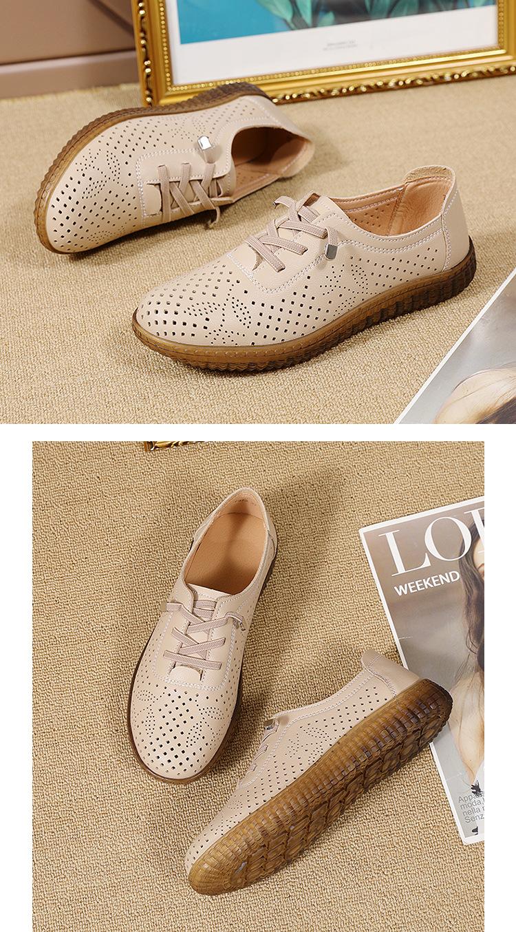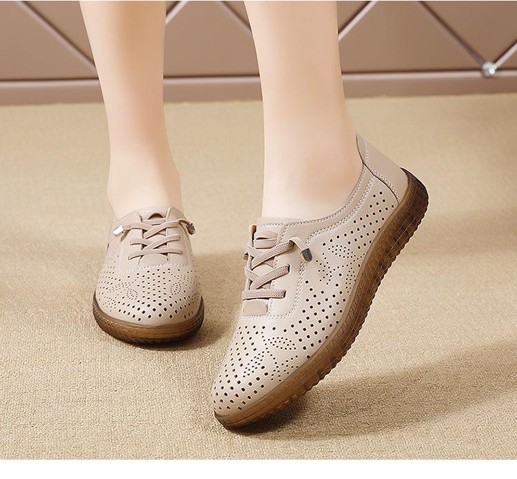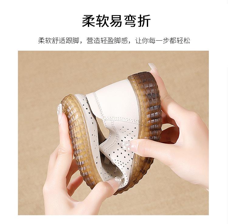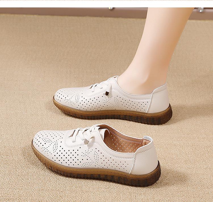 Verano 2024 Superficie Suave Cuero Genuino Tendón de Res Suela Blanda Zapatos de Cuero Pequeños Zapatos de Malla Transpirable Huecos para Mujer Sandalias Planas para Madre de Mediana Edad