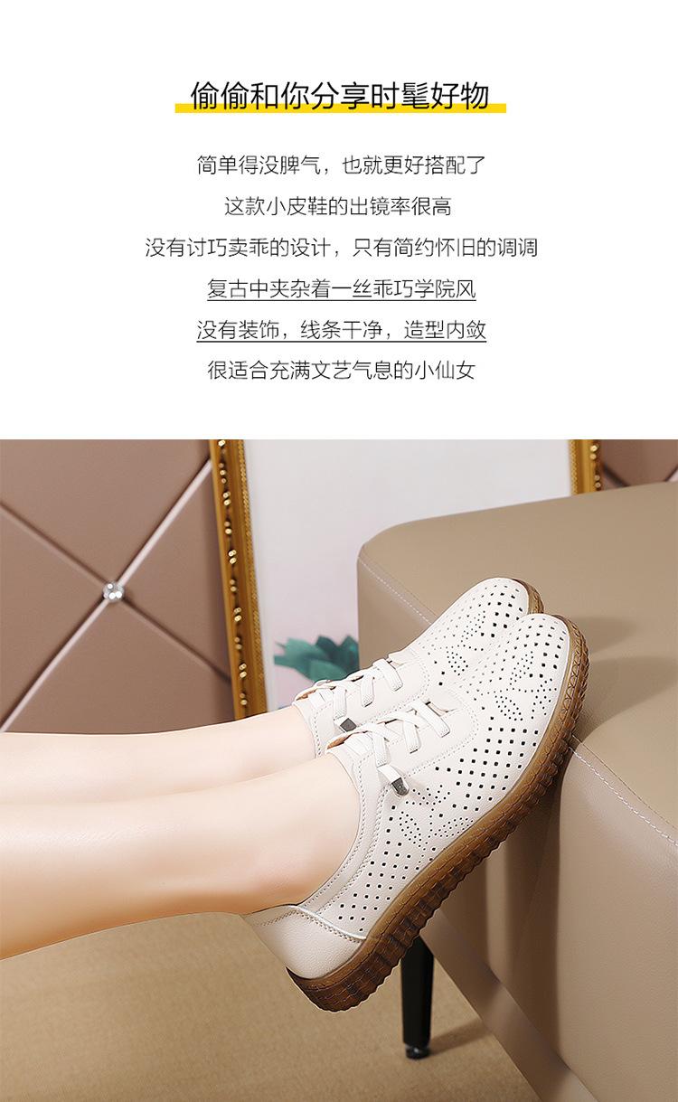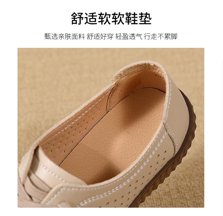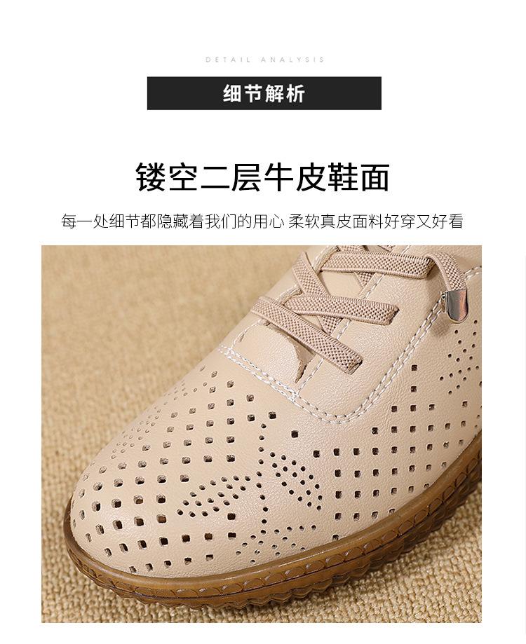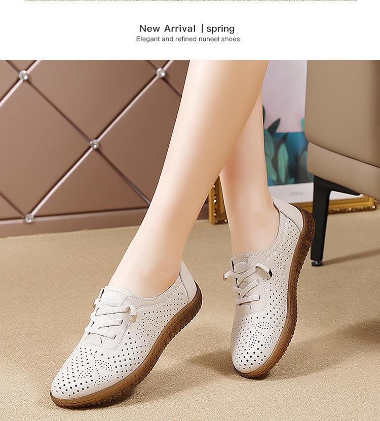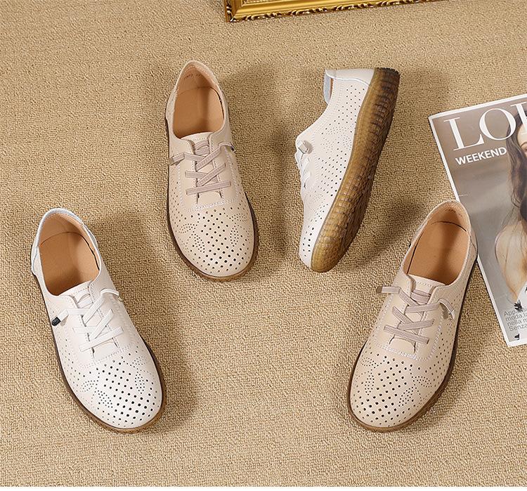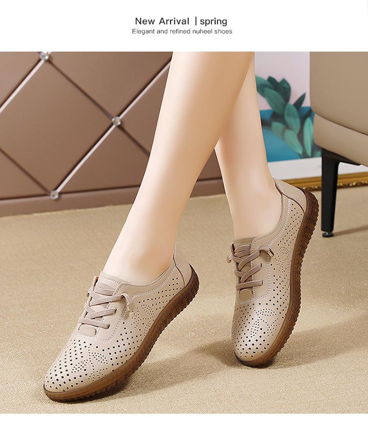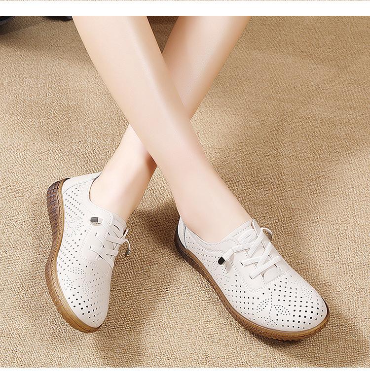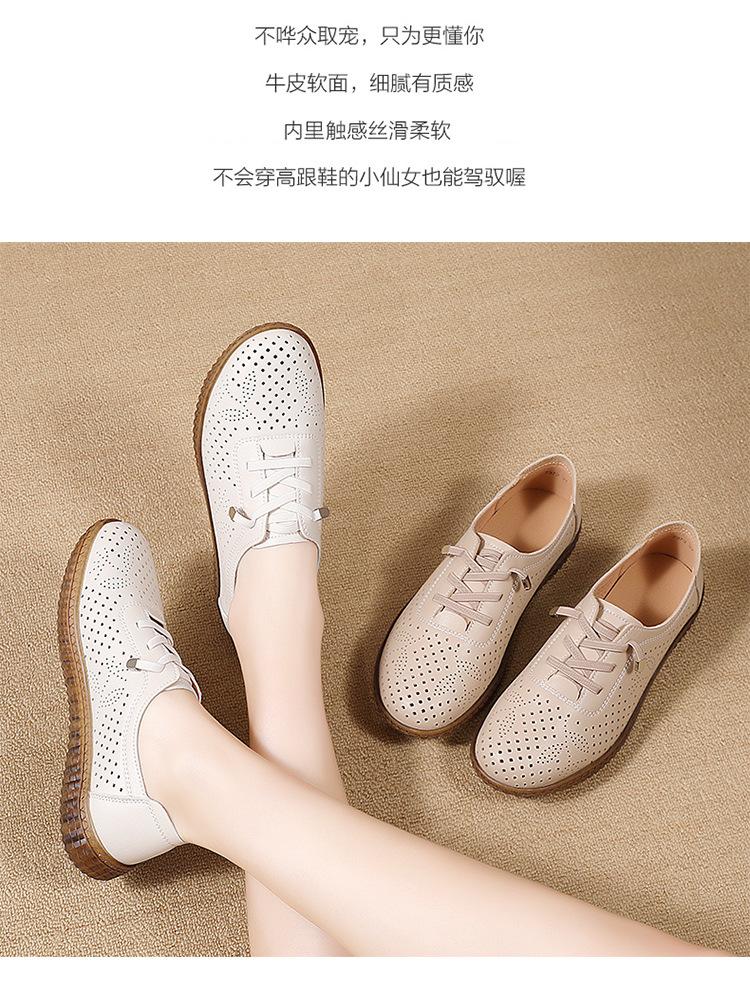 Verano 2024 Superficie Suave Cuero Genuino Tendón de Res Suela Blanda Zapatos de Cuero Pequeños Zapatos de Malla Transpirable Huecos para Mujer Sandalias Planas para Madre de Mediana Edad