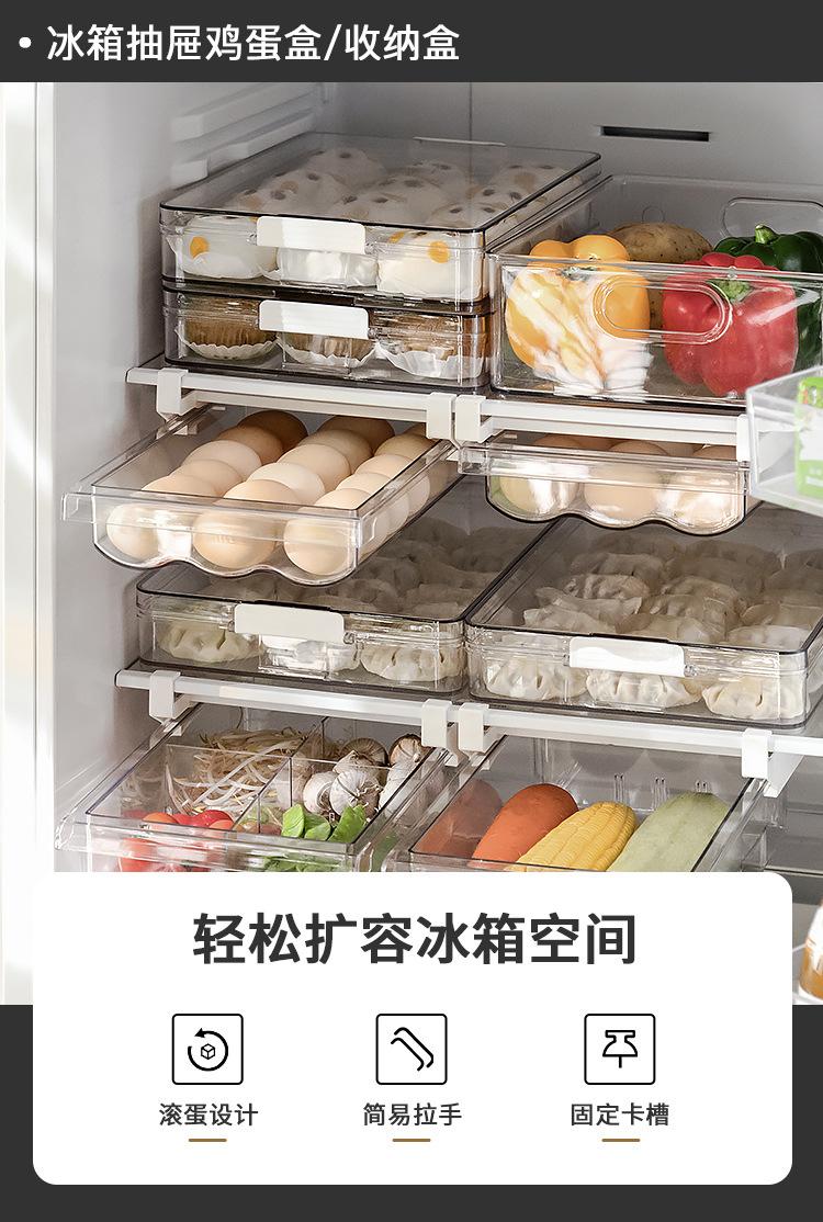 Caja de conservación de alimentos frescos para refrigerador, caja de almacenamiento, cajón de cocina, caja para huevos congelados, caja para terminar alimentos, verduras y frutas
