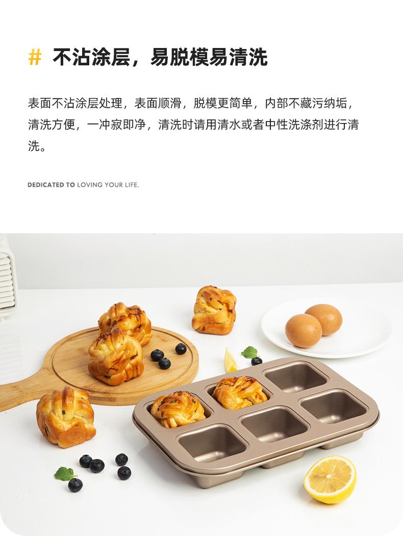 Xyt12 Molde Mini Cuadrado para Pan, Molde Pequeño para Tostadas, Molde para Pound Cake, Molde para Embrión de Hamburguesa, Horno Doméstico, 6 Cavidades, Antiadherente para Hornear