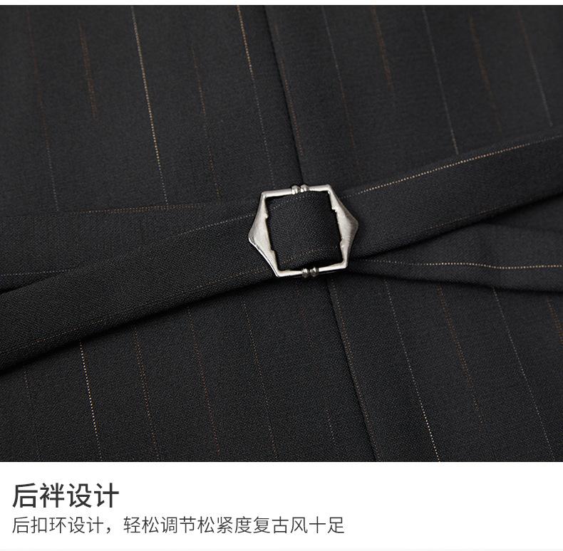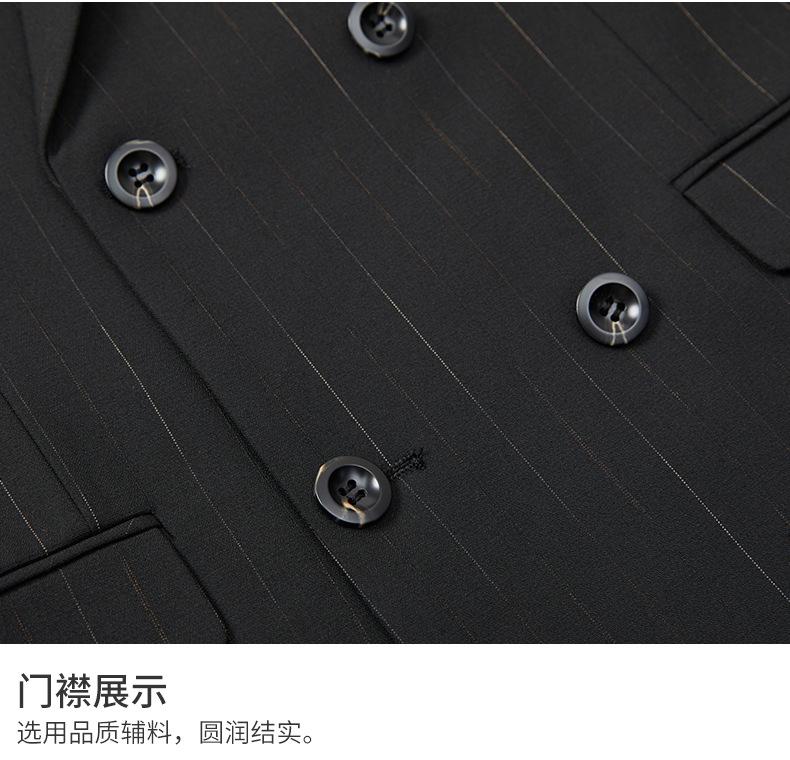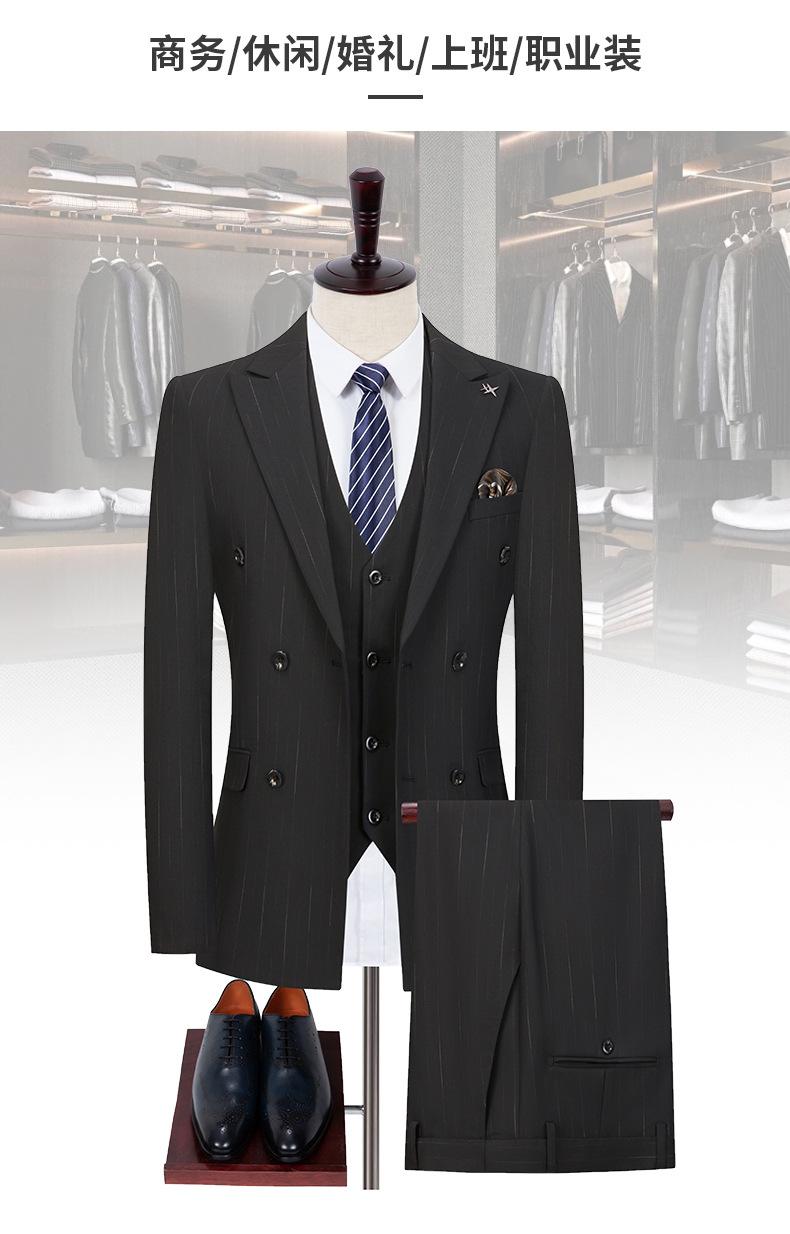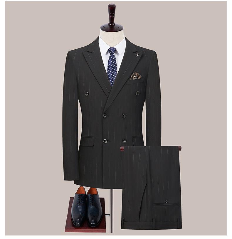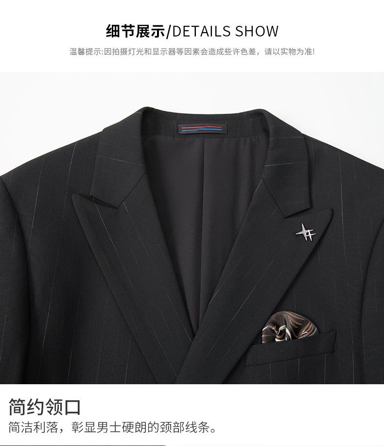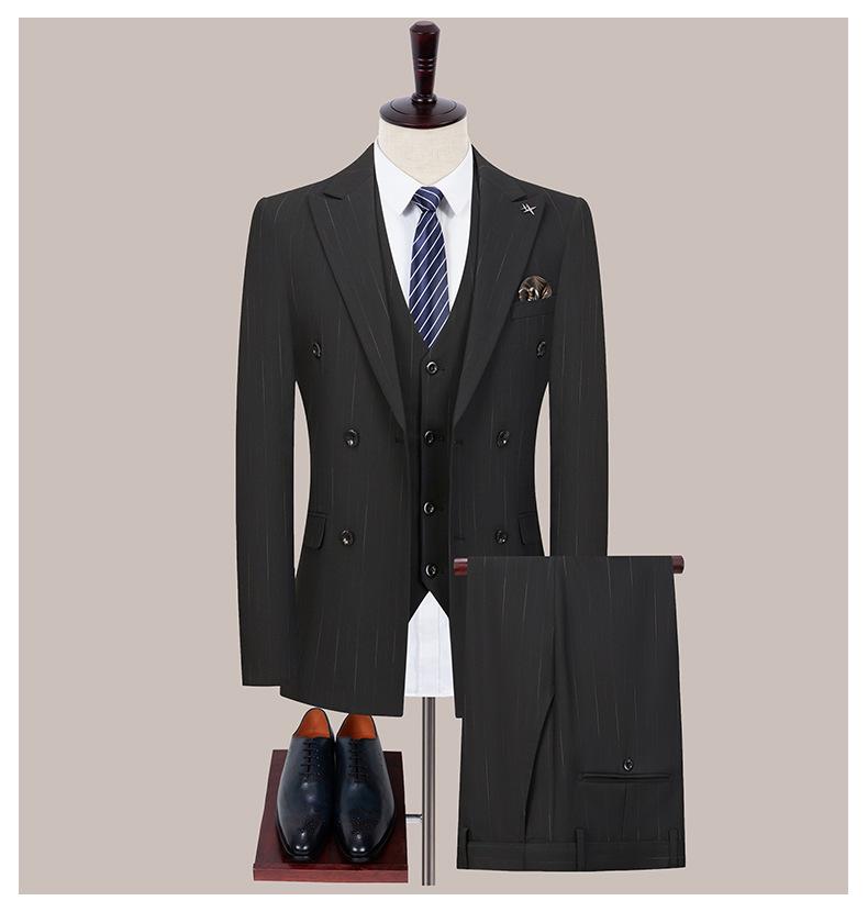 Traje casual de tres piezas nuevo 2025 con cuello barco Vestido coreano a rayas negro Traje de hombre de corte slim