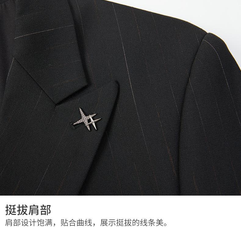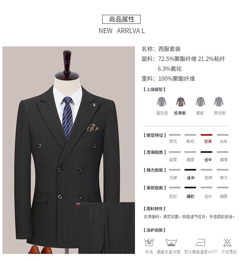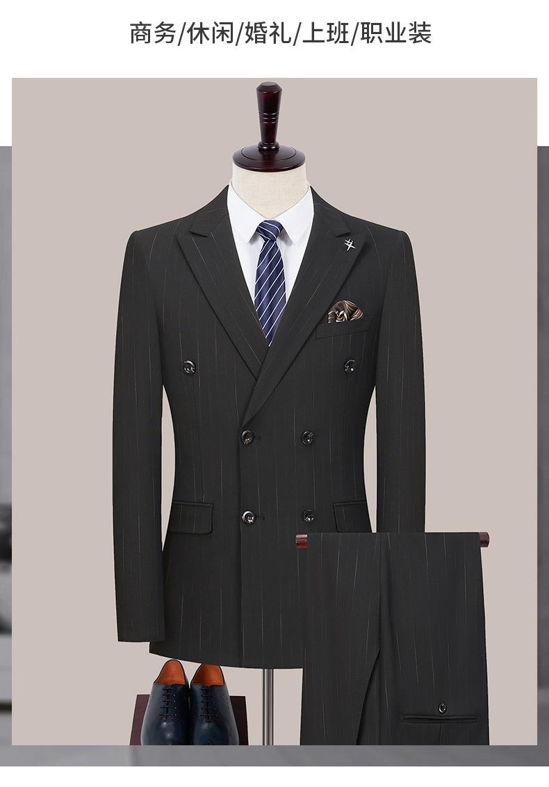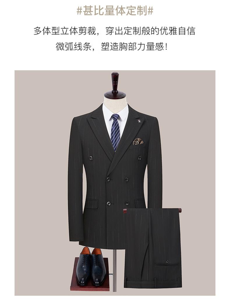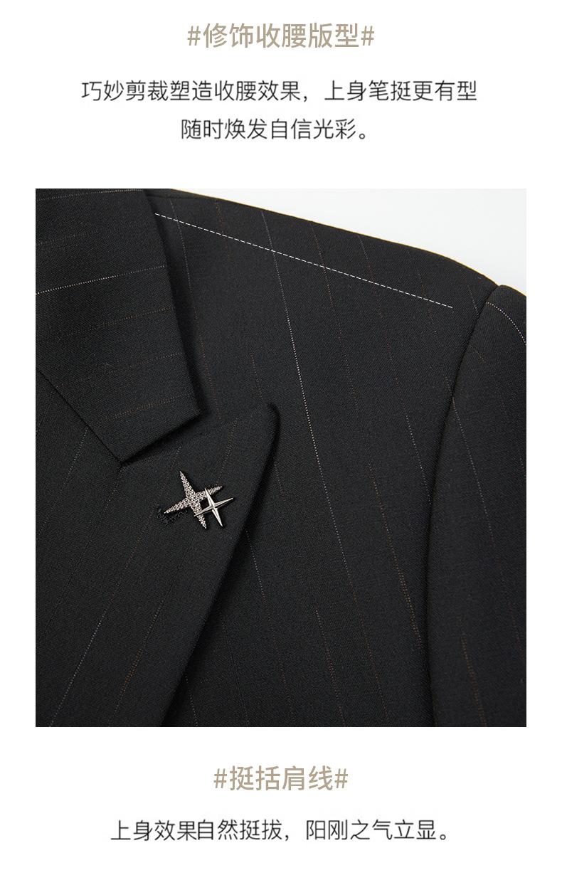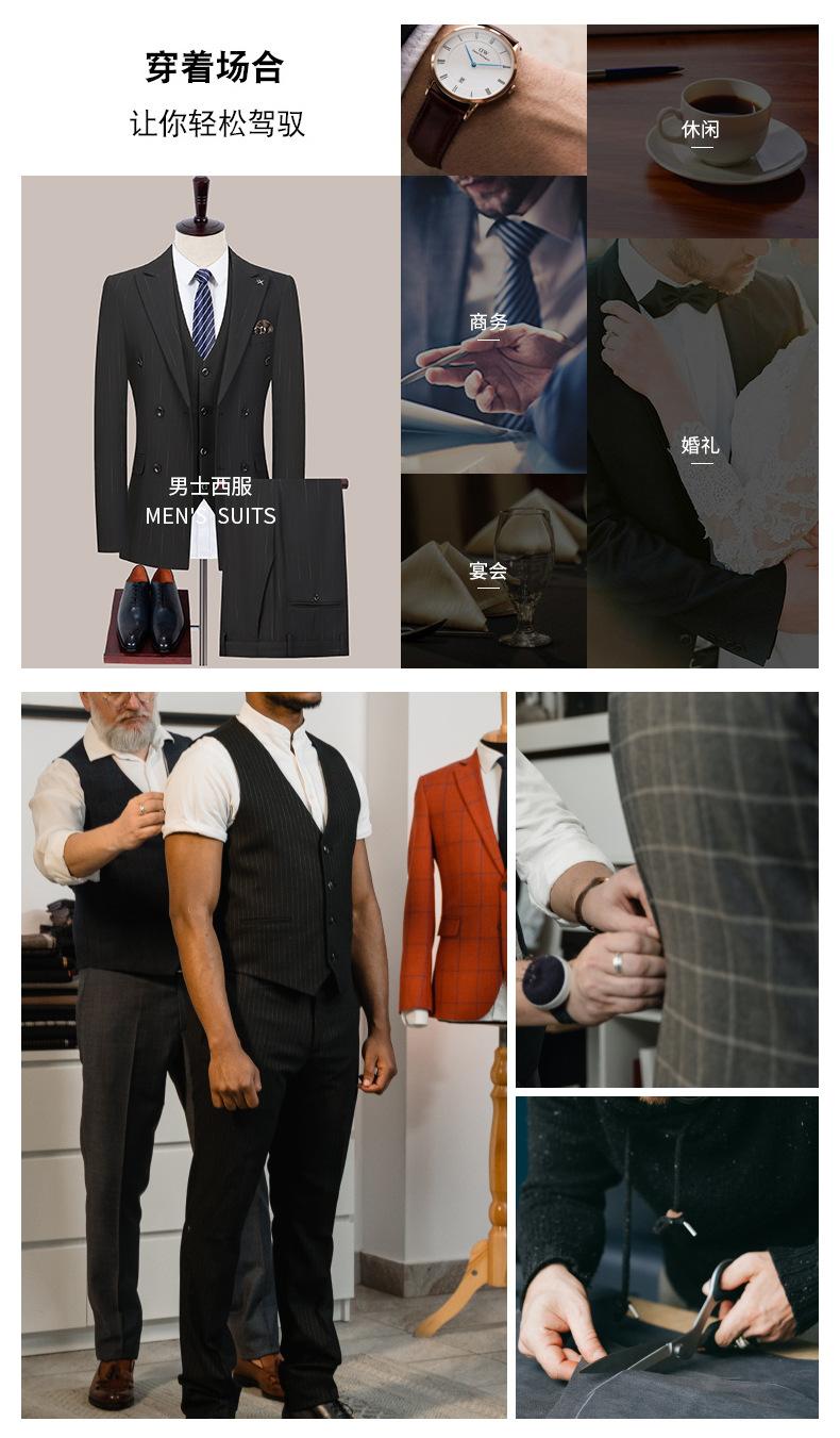 Traje casual de tres piezas nuevo 2025 con cuello barco Vestido coreano a rayas negro Traje de hombre de corte slim