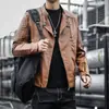 Chaqueta de cuero multibolsillos informal para hombre, chaqueta de cuero de motociclista de moda para hombre, chaqueta de cuero de trabajo con solapa de moda para hombre, otoño e invierno