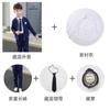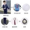 Jacket + trousers + men's shirt + navy tie + blue waistcoat