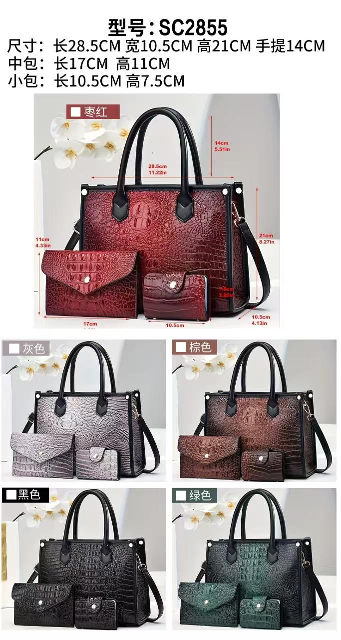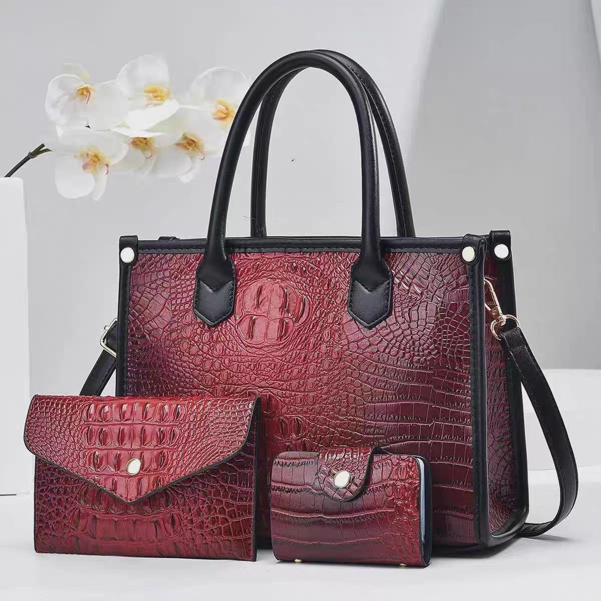 2025 nuevo bolso de mano cruzado de textura de cocodrilo para mujer, de un hombro, cruzado, de gran capacidad, juego de tres piezas