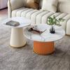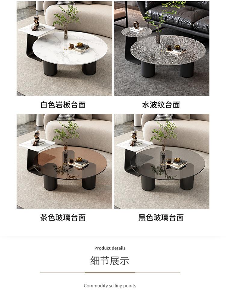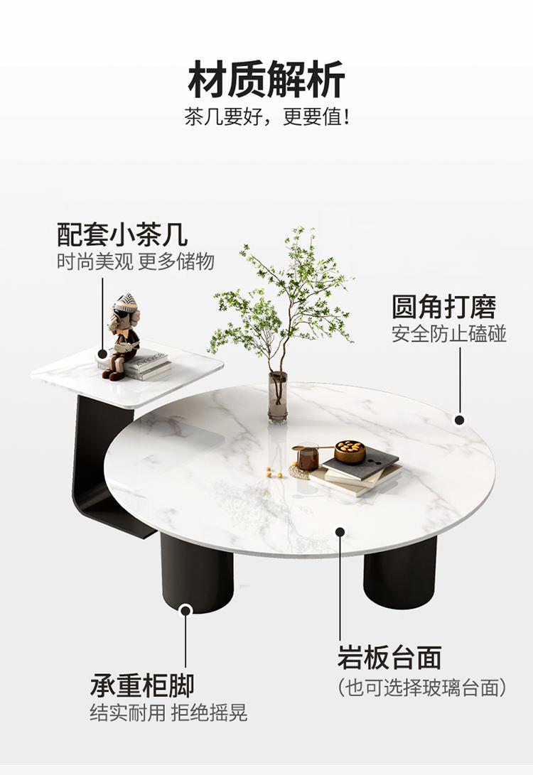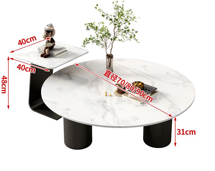 Mesa de centro redonda cuadrada con placa de roca de mármol para el hogar, sala de estar, apartamento pequeño, casa de alquiler, lujosa, moderna, sencilla, creativa, para celebridades de Internet