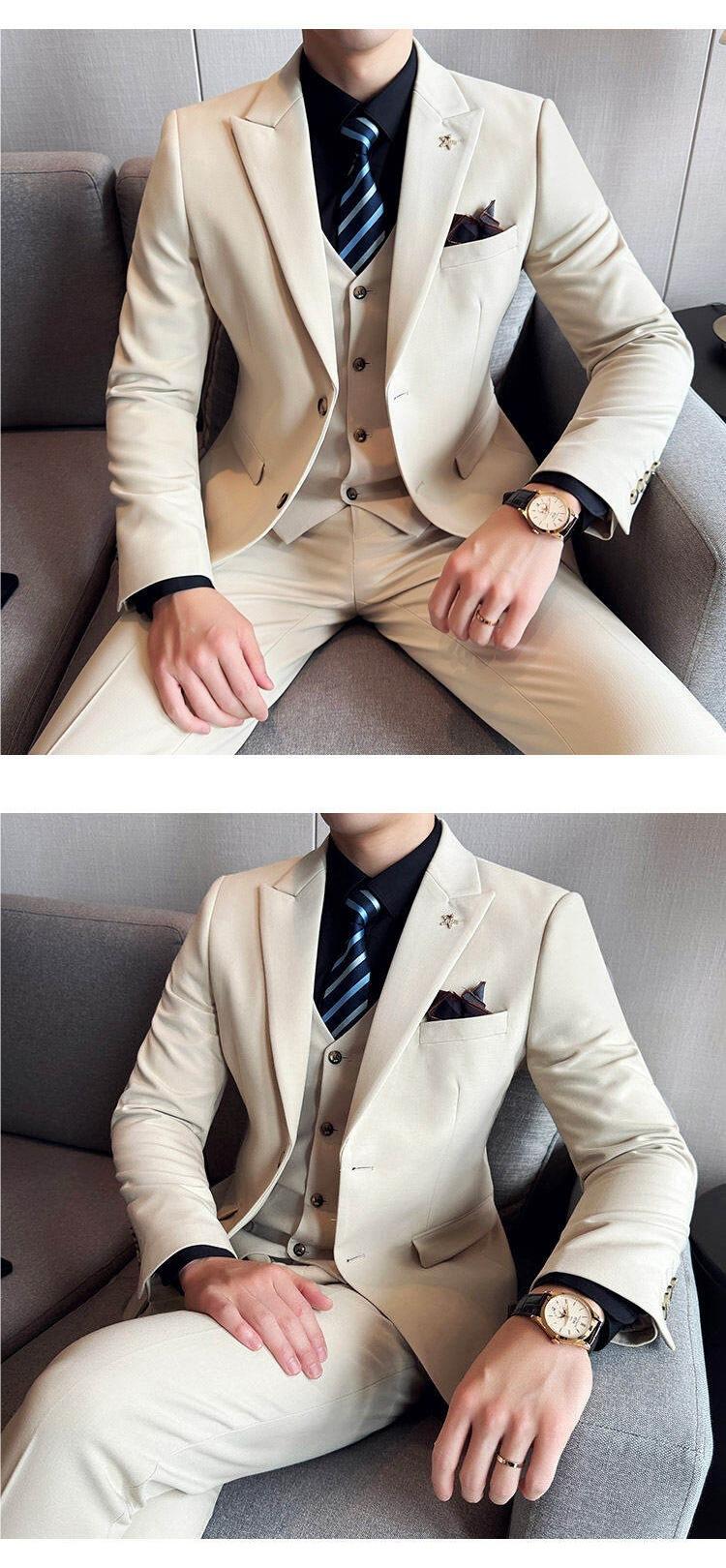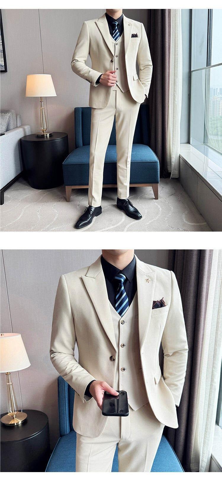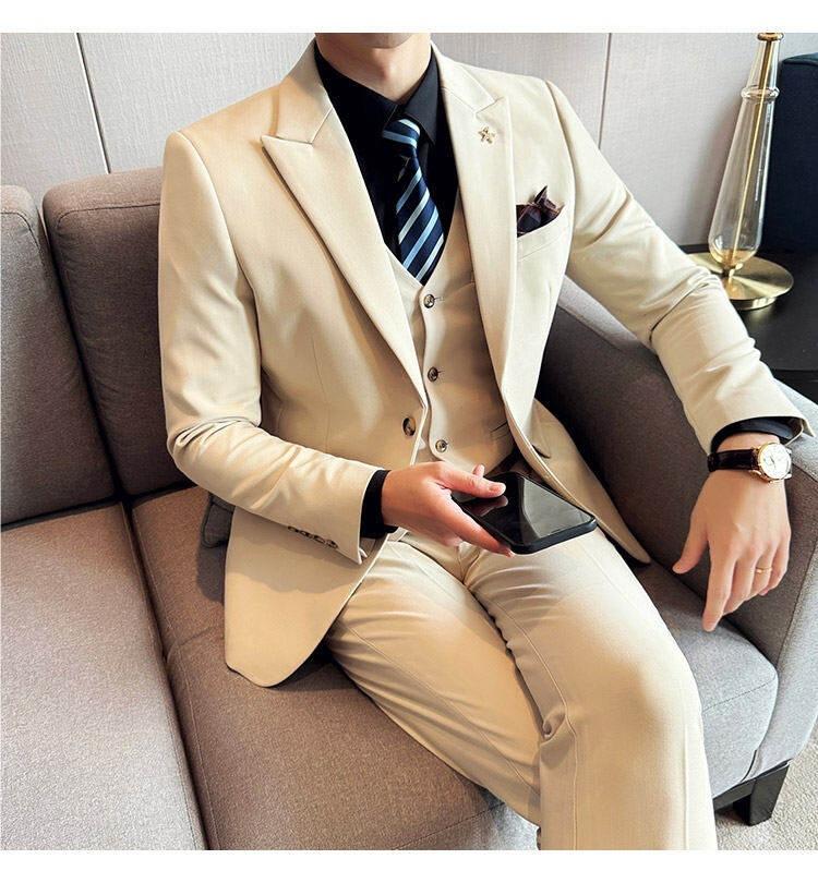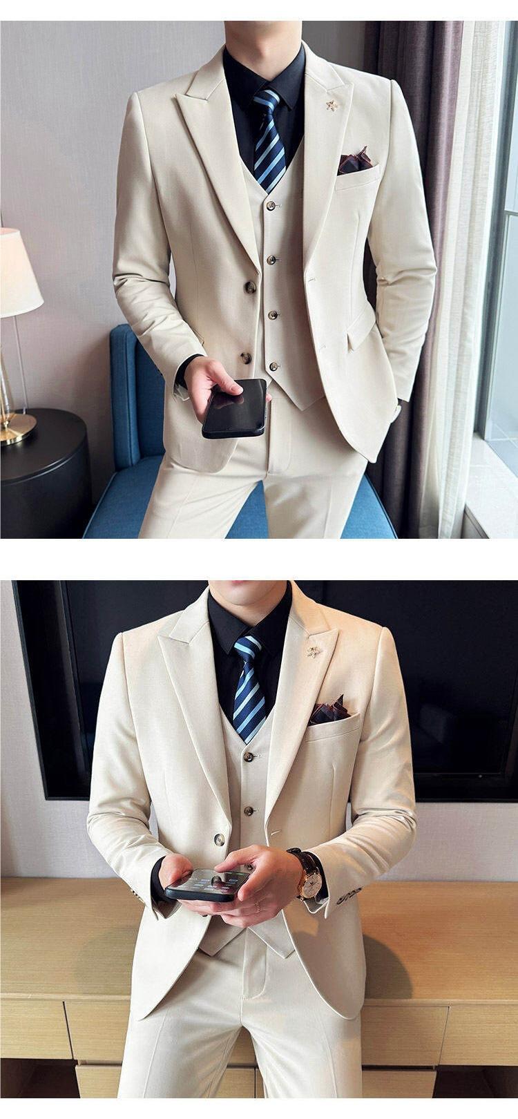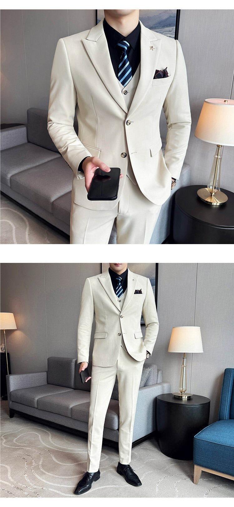 2025 Nuevo Traje Casual de Negocios para Hombre Color Sólido Talla Grande Traje Slim Conjunto de Tres Piezas Novio Padrinos Boda Hombres