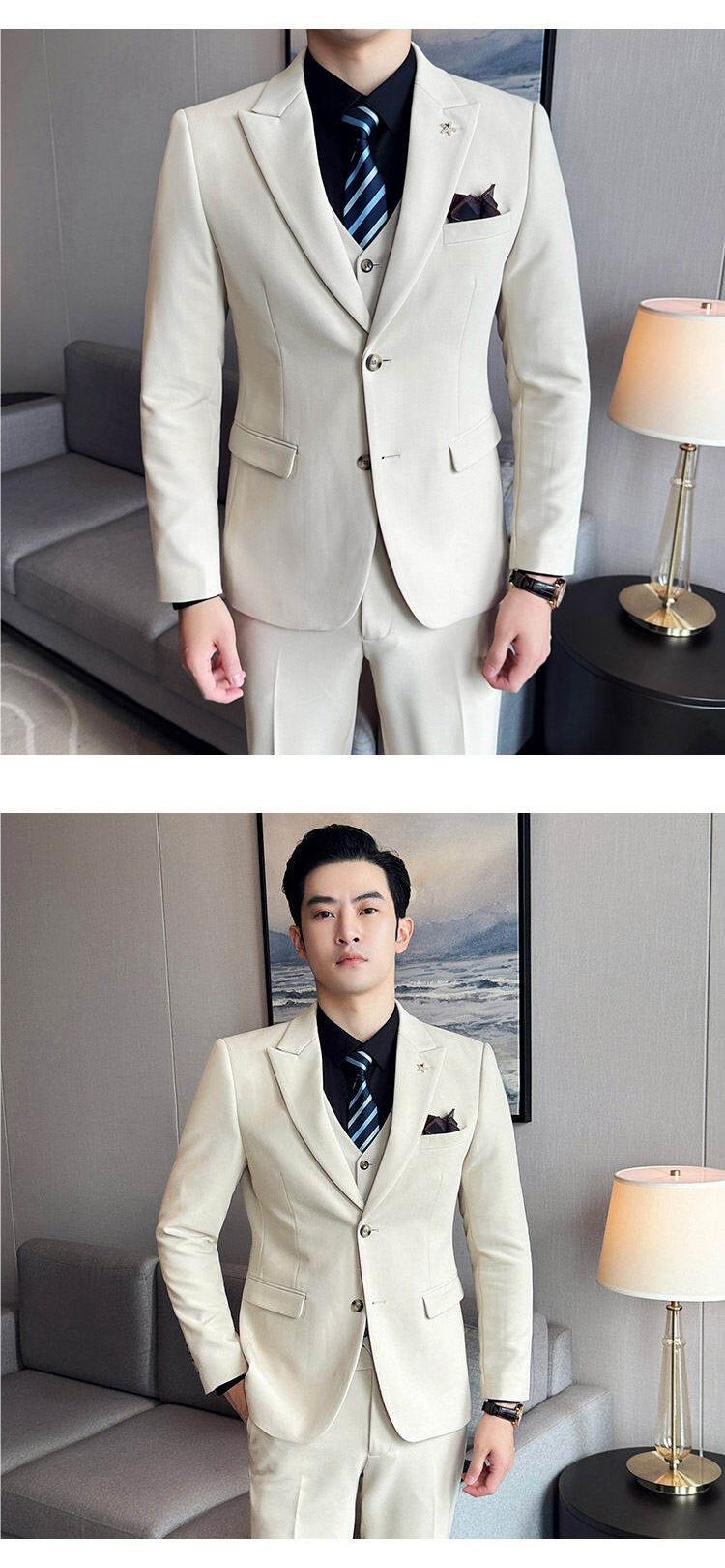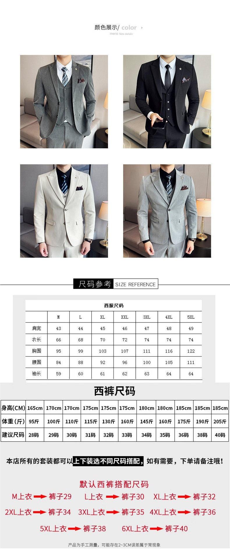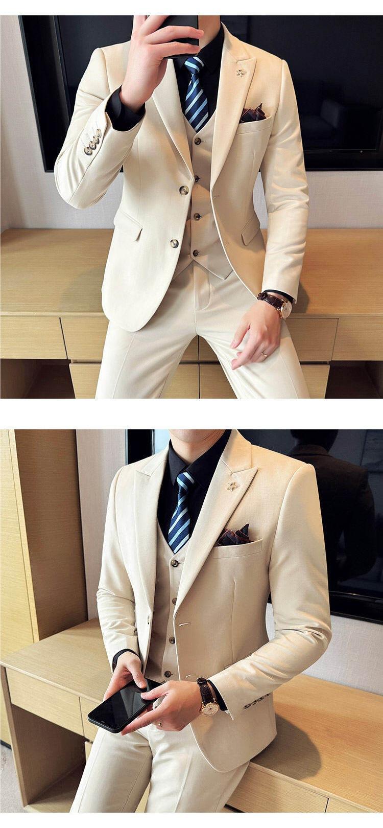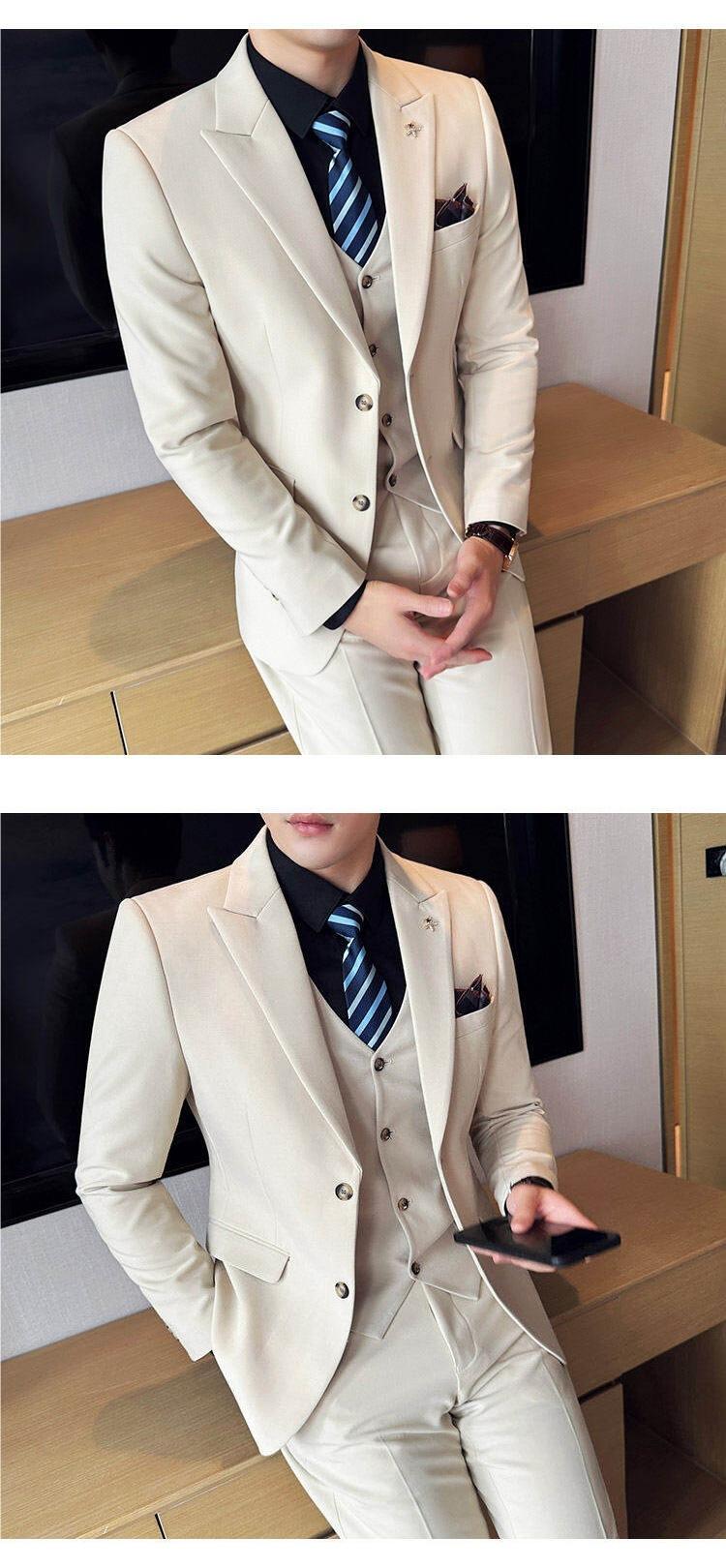 2025 Nuevo Traje Casual de Negocios para Hombre Color Sólido Talla Grande Traje Slim Conjunto de Tres Piezas Novio Padrinos Boda Hombres
