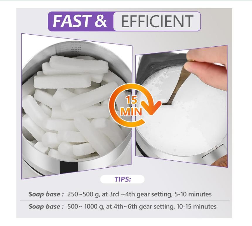 Regulaciones de EE. UU. Horno de calentamiento cuadrado gris1individuo,1000taza con asa curva ml1individuo,250Gramos de base de jabón blanco3Aceites esenciales en bolsas y cajas3Cuchara cuadrada de plata1Pigmentos líquidos de grado alimenticio3Botella, silicona rosa6Molde cuadrado de rejilla1individuo,5Bola de rosas flores secas1Bolsa