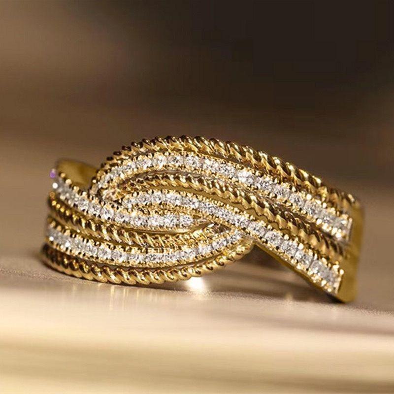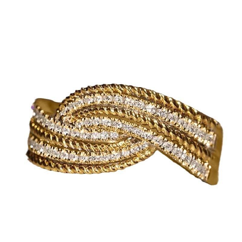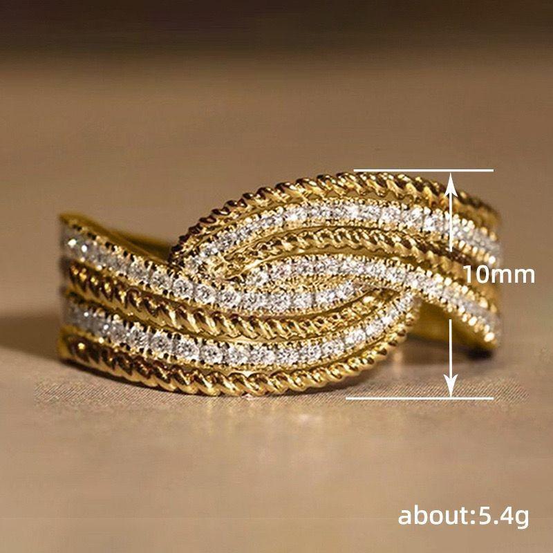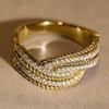 Pulsera de brazo super flash de venta caliente transfronteriza, temperamento elegante europeo y americano, circonita micro incrustada, anillo Seiko de línea cruzada, anillo para dedo