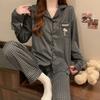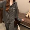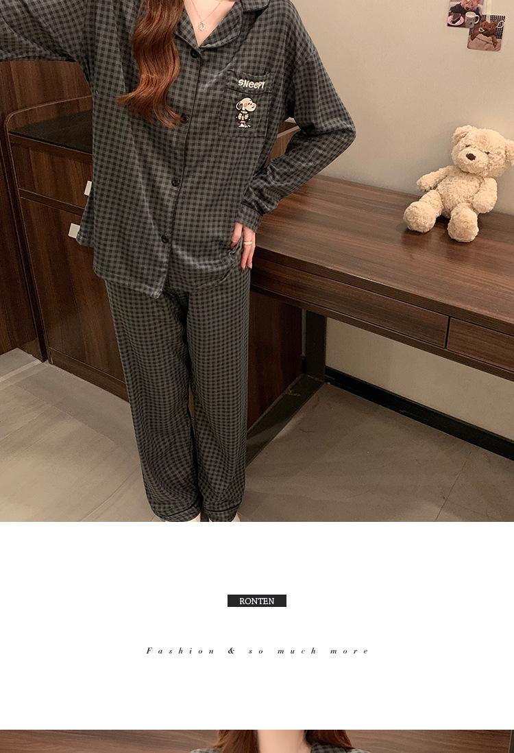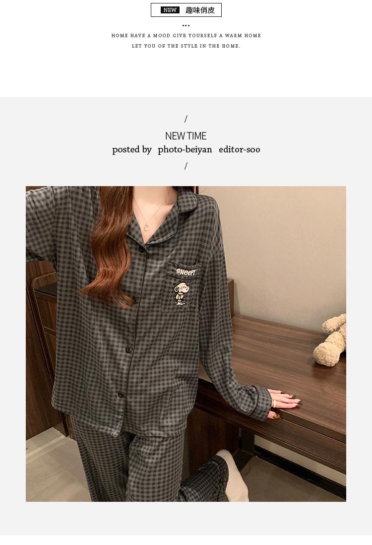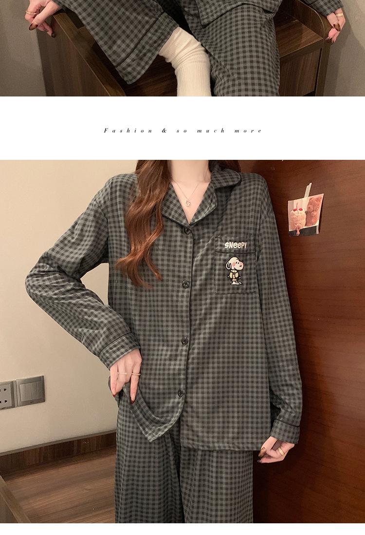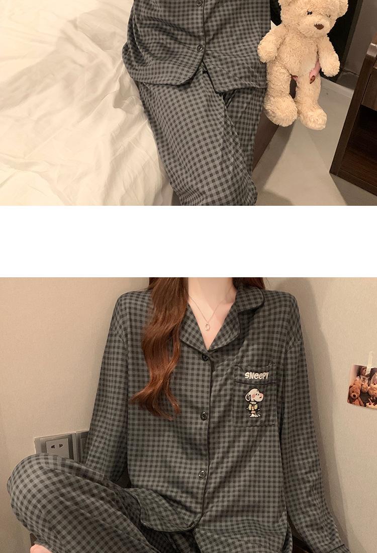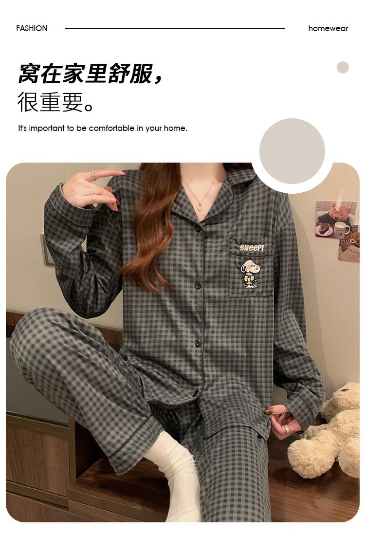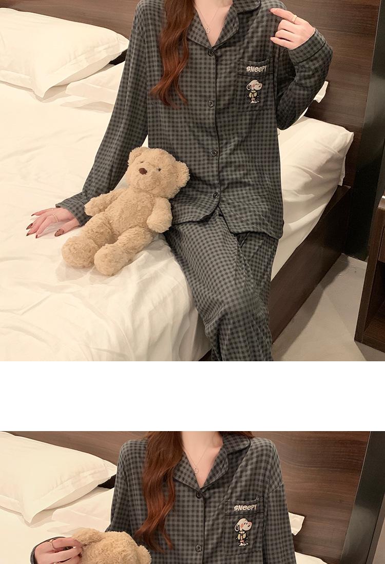 Pijama Snoopy Bordado de Dibujos Animados para Mujer Imitación Algodón Primavera 2025 Manga Larga Dos Piezas Ropa para el Hogar Celebridad de Internet Generación en Vivo