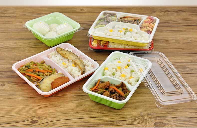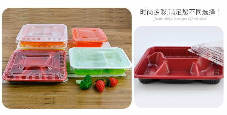 Lonchera desechable, caja de embalaje para llevar de tres rejillas, caja de comida rápida de cuatro rejillas y cinco rejillas, lonchera rectangular Bento con tapa