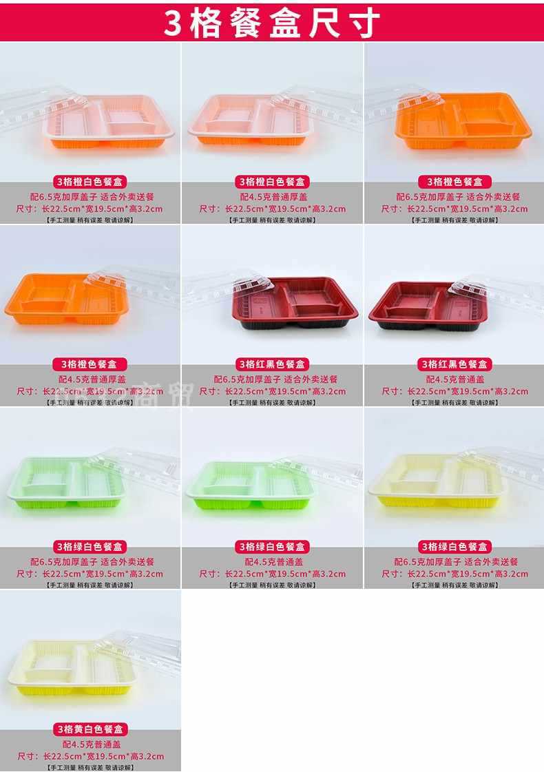Green and white deep 3-compartment containers, 600 sets, approximately 1000ml capacity, Black and red, deep 3-...