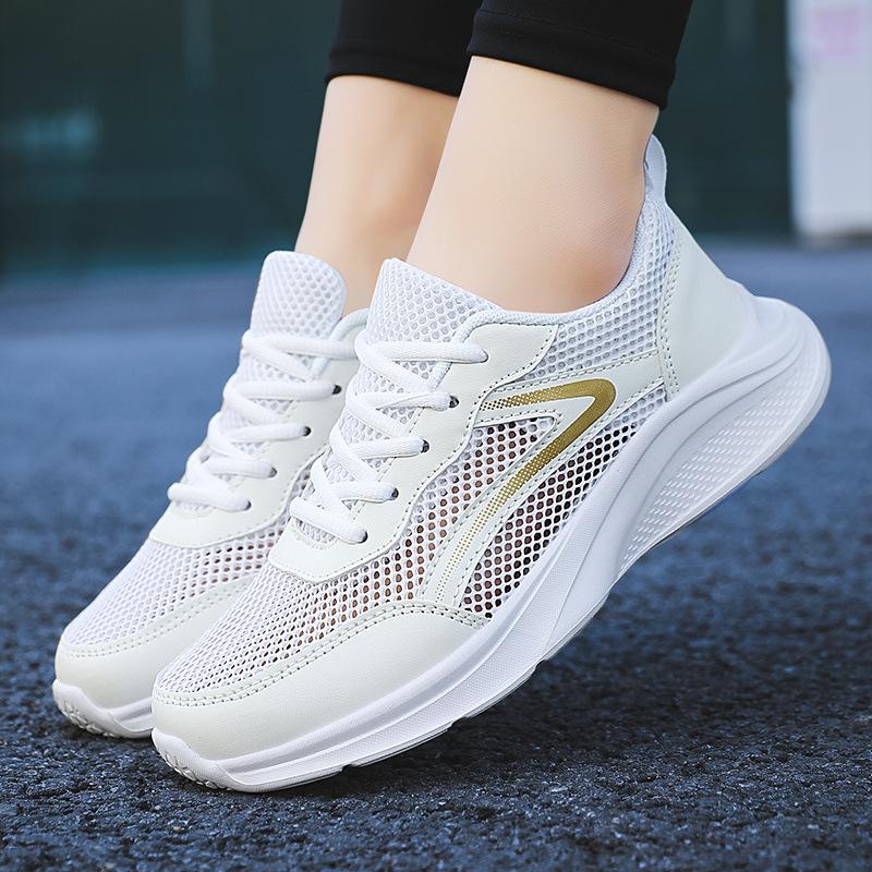 Zapatos casuales de talla grande transfronterizos, deportivos, ligeros, tejidos voladores, para mujer, zapatos para correr de moda con cordones y transpirables para mujer
