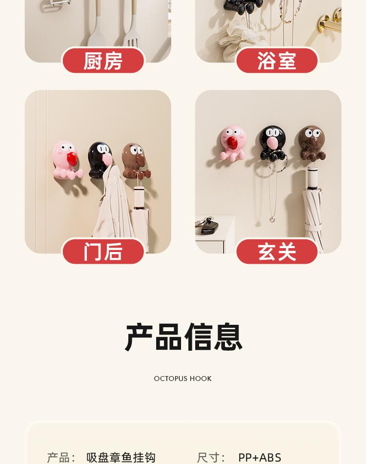 Gancho de succión de dibujos animados gancho fuerte sin perforaciones al por mayor gancho de almacenamiento para baño y hogar gancho para puerta sin costuras