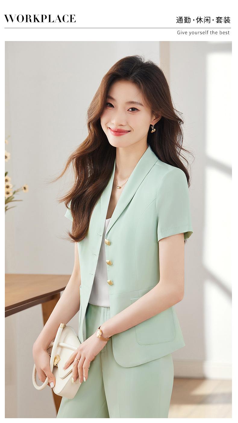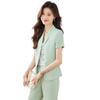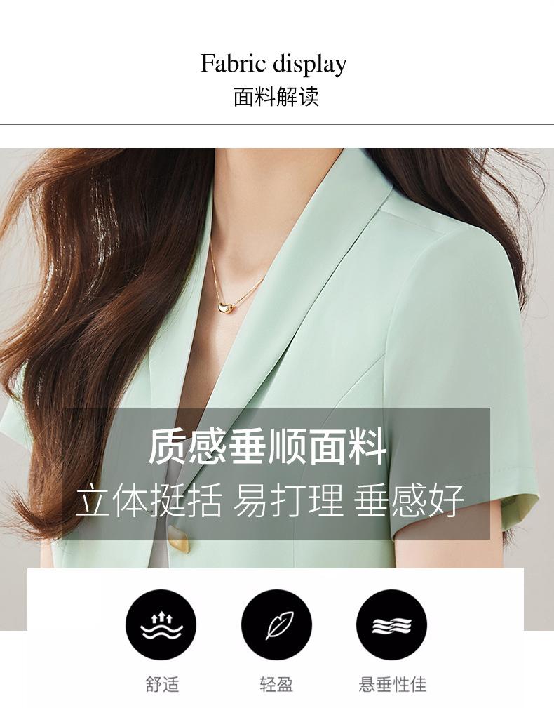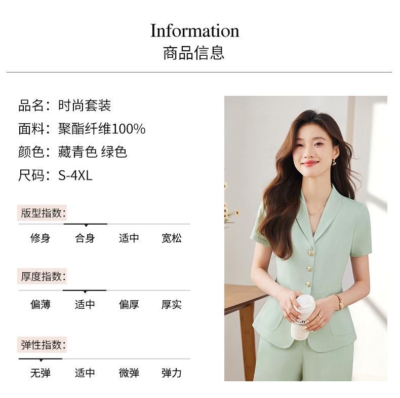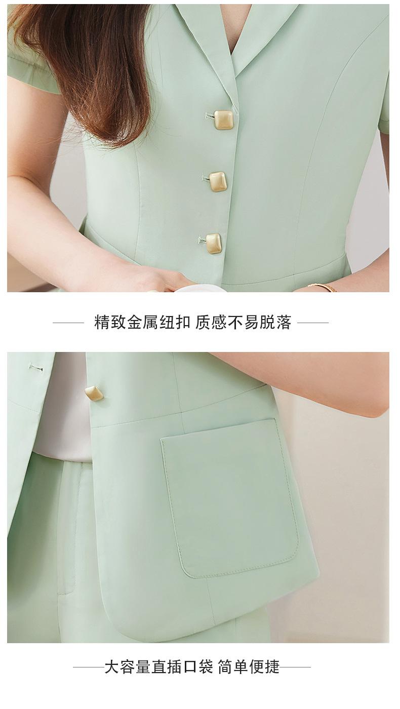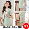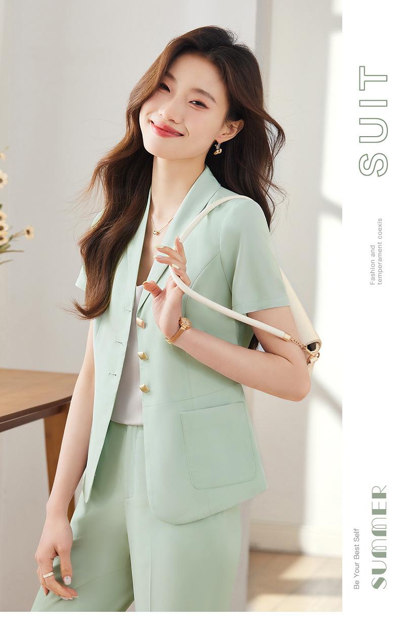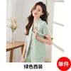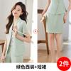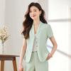 Traje pequeño de manga corta verde para mujer, chaqueta, pantalones y falda, traje profesional de tres piezas, moda de verano 2024