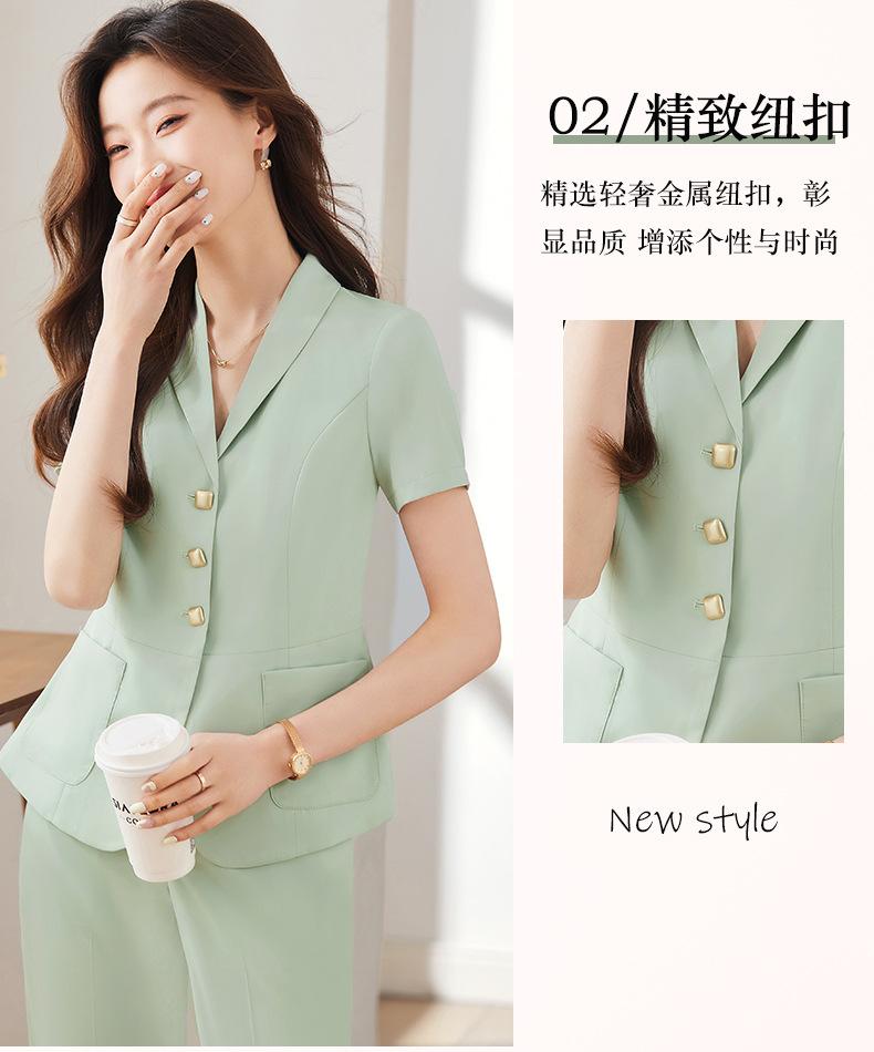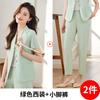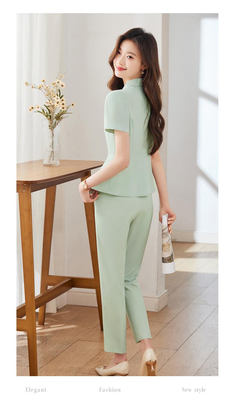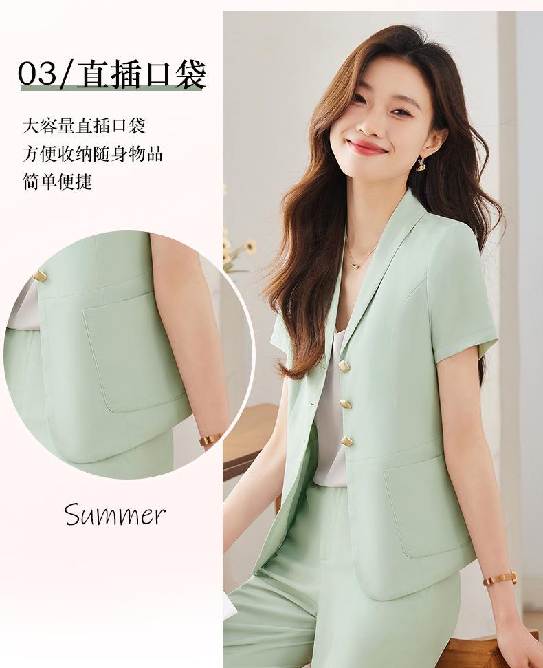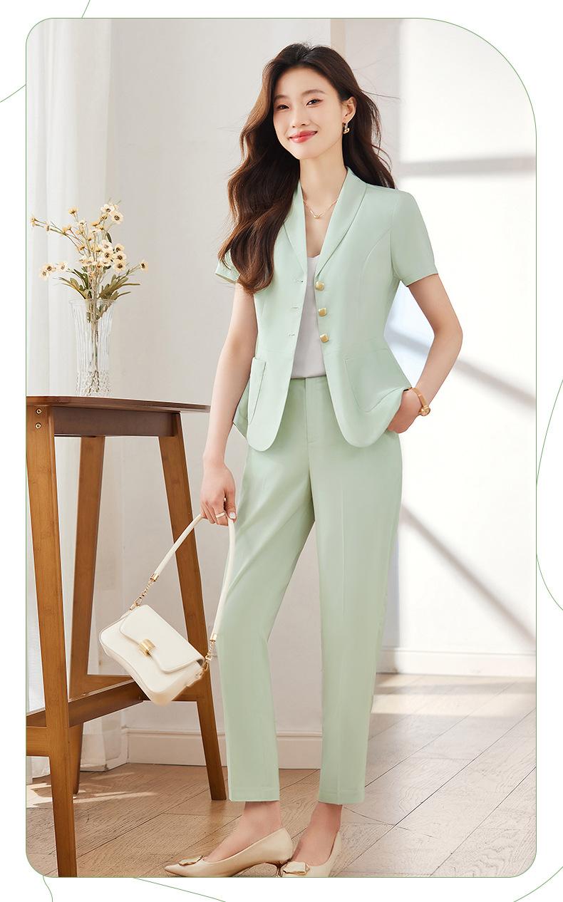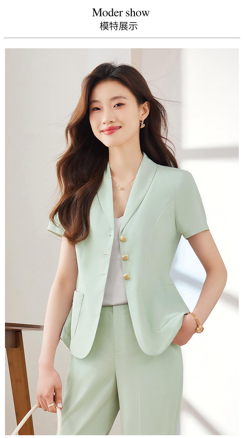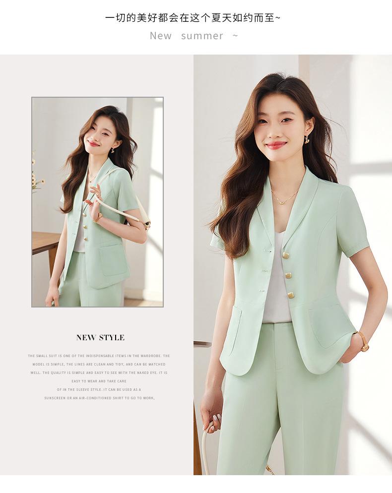 Traje pequeño de manga corta verde para mujer, chaqueta, pantalones y falda, traje profesional de tres piezas, moda de verano 2024