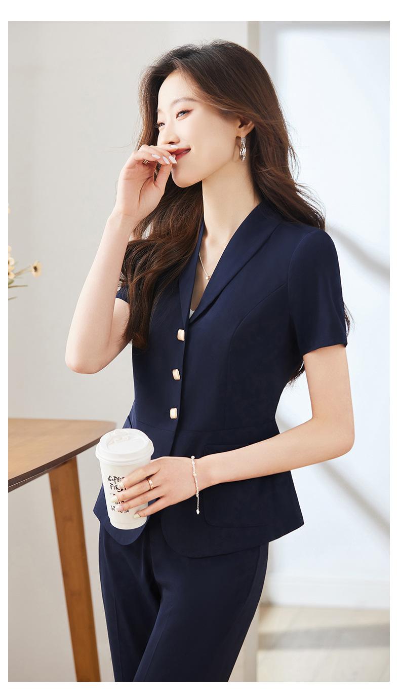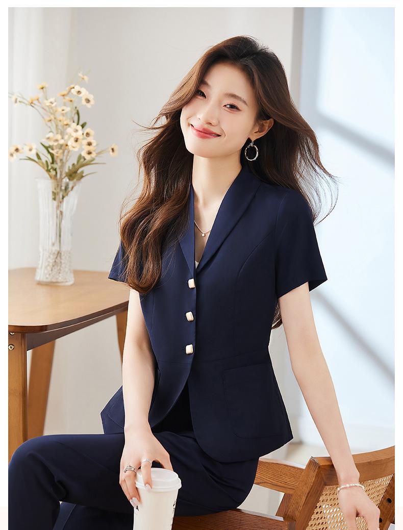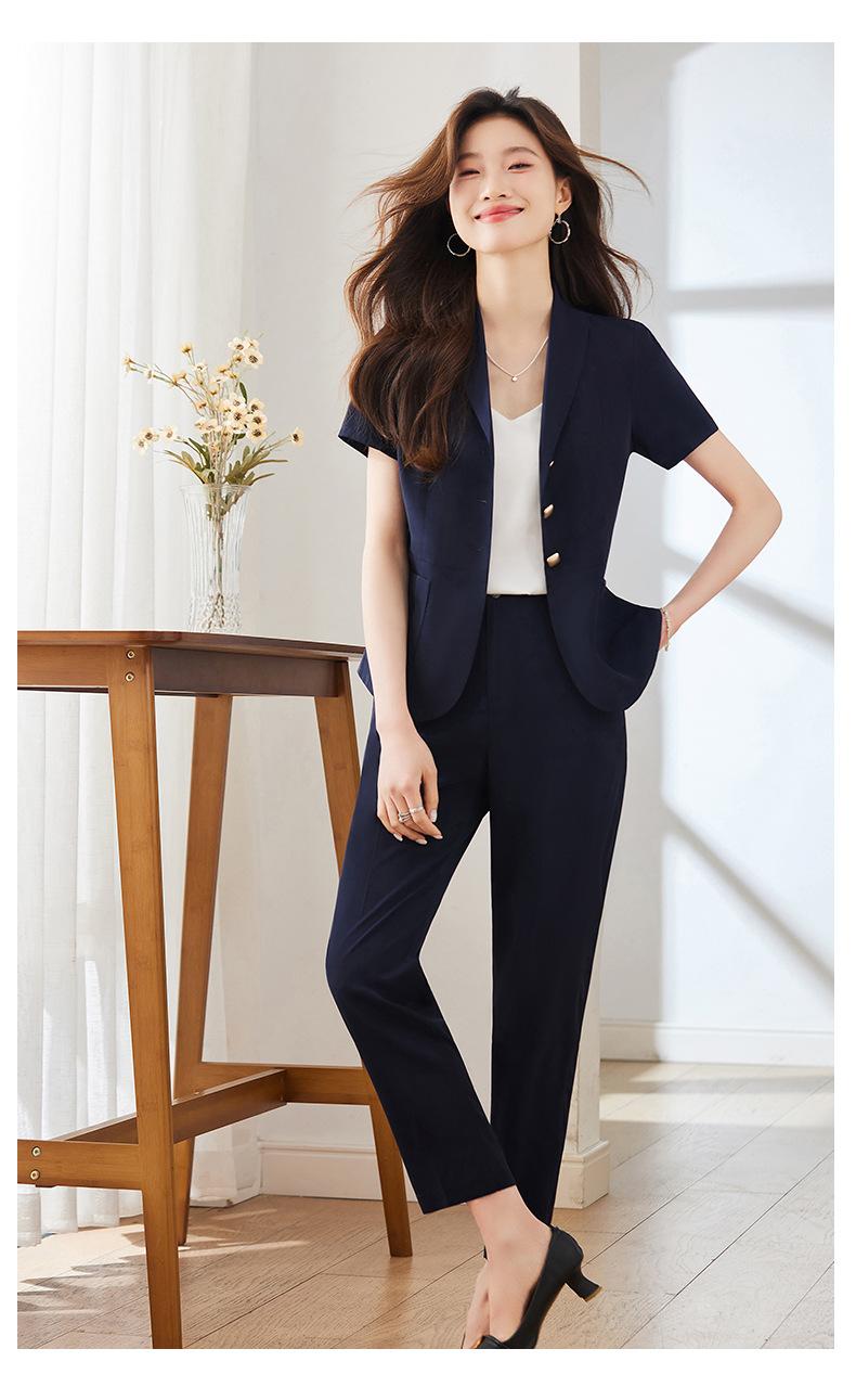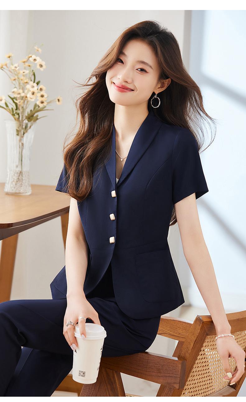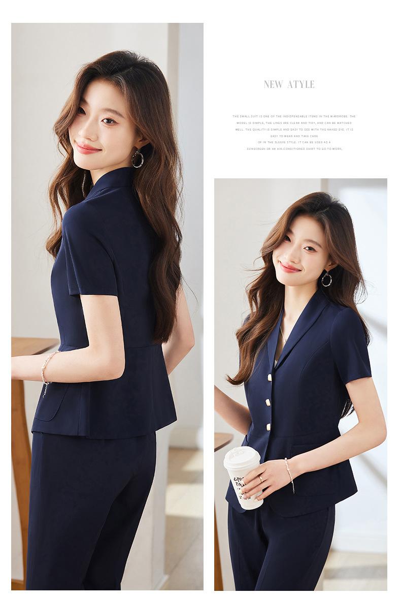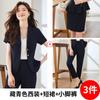Traje pequeño de manga corta verde para mujer, chaqueta, pantalones y falda, traje profesional de tres piezas, moda de verano 2024
