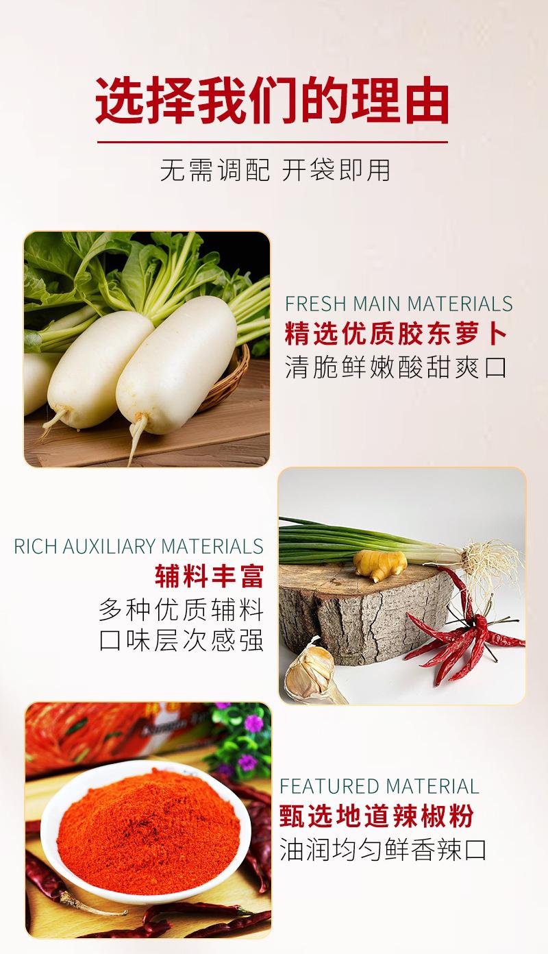 Radish, chili powder, garlic, fish lotion, green onions, apples, pears, shrimp paste, green onions and ginger,...