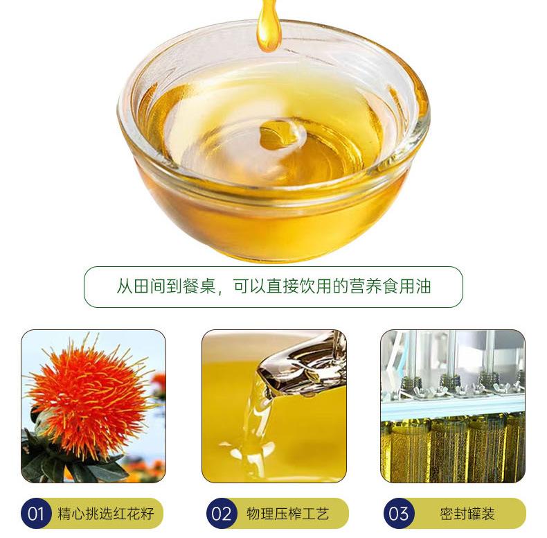 Aceite de Semilla de Cártamo Comestible de Xinjiang Venta al por Mayor al Contado Ácido Linoleico 70% Prensado Físico Aceite Puro de Semilla de Cártamo