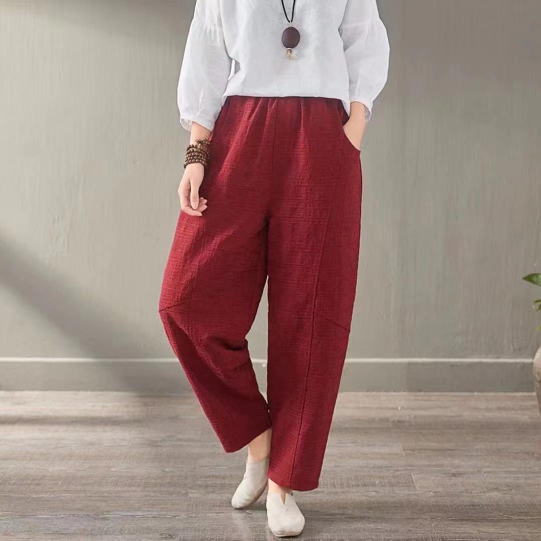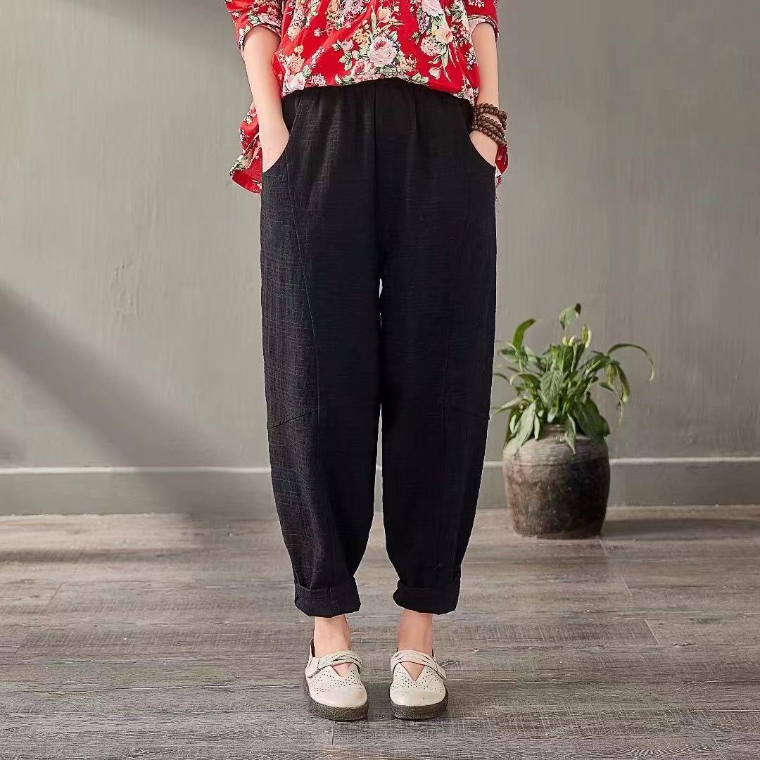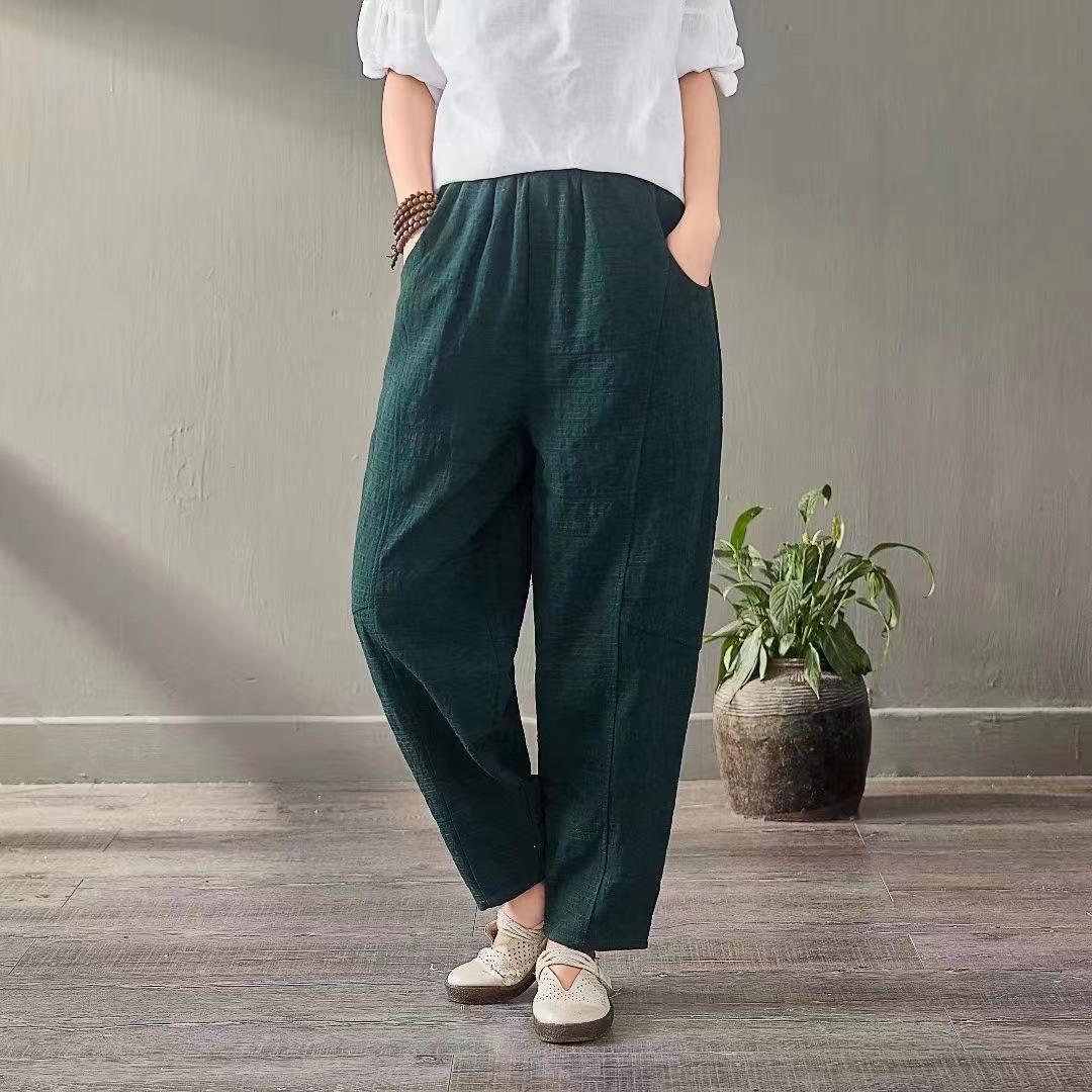 Pantalones harén casuales de algodón y lino de color puro, combinables con todo, para mujer, con cintura elástica, adelgazantes, de estilo rábano, para primavera de 2024