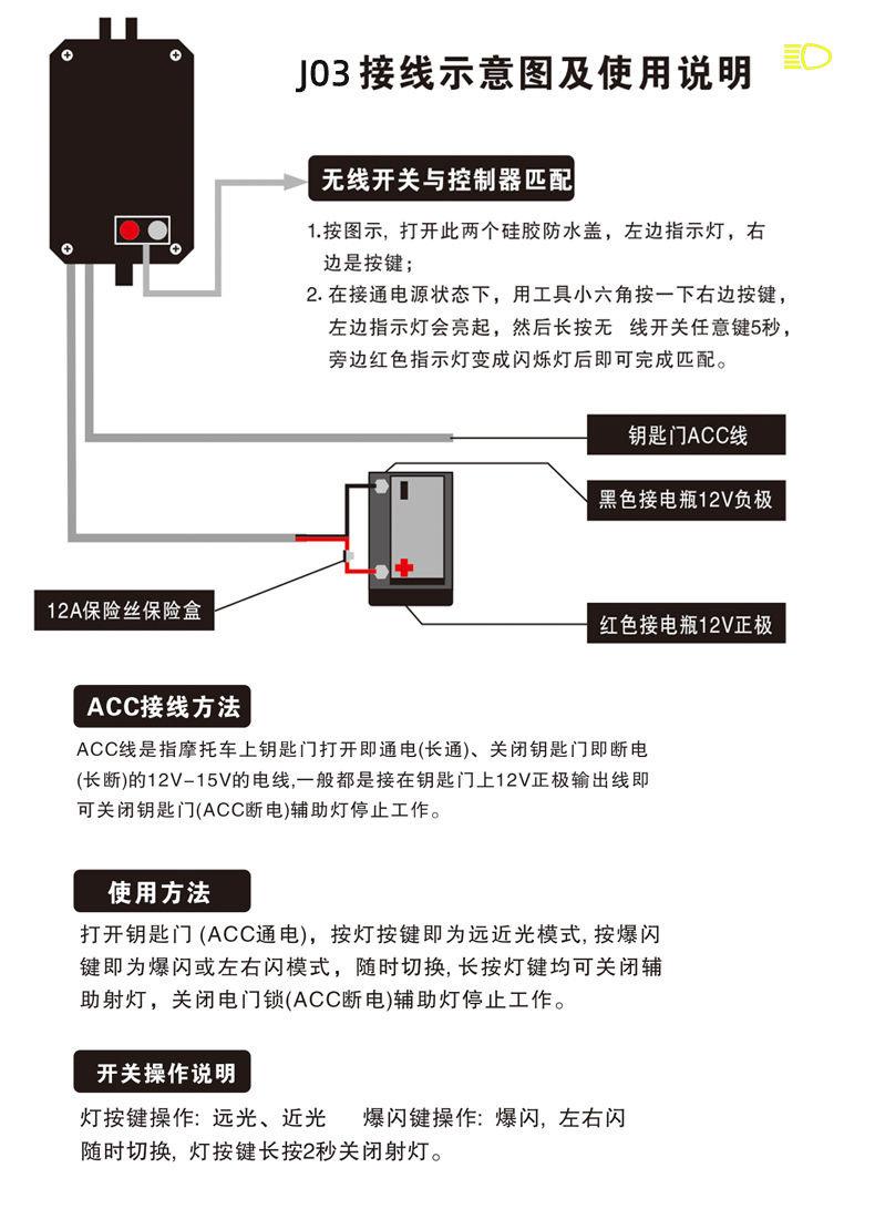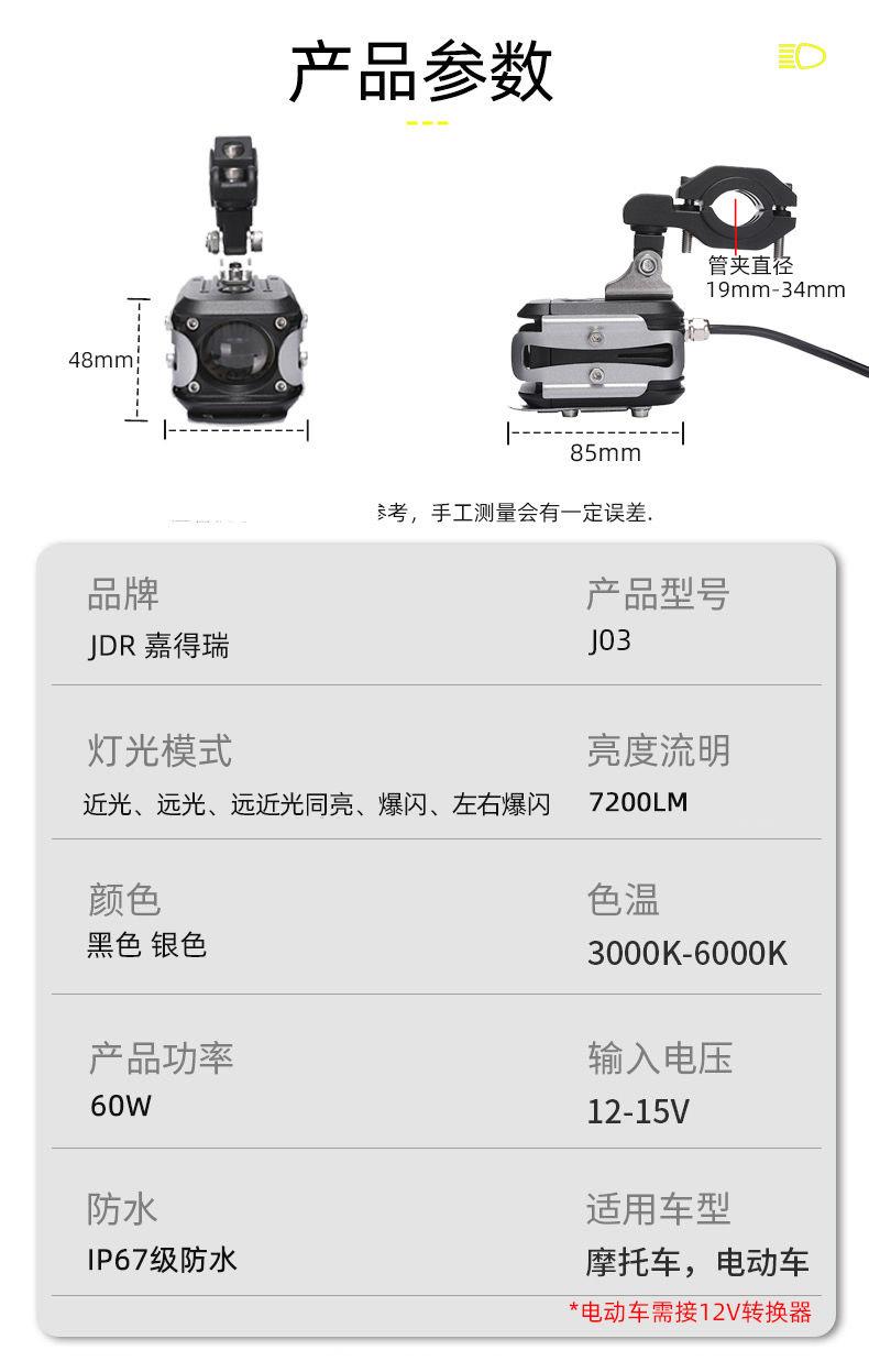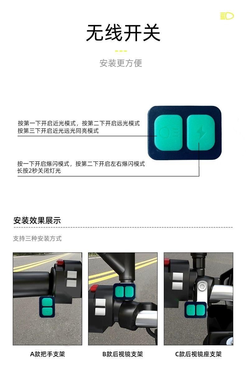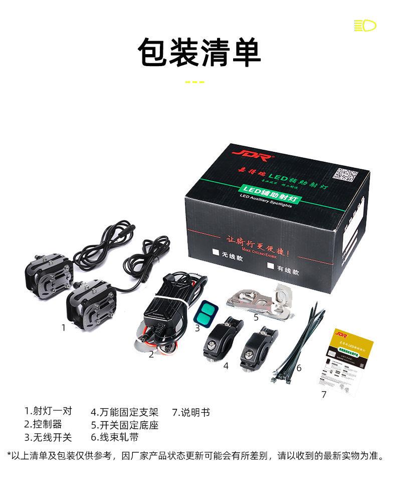 J03 Foco LED para motocicleta, luz de lejos y de cerca, lámpara auxiliar, flash, lente amarilla y blanca, interruptor inalámbrico, resistente al agua, luz potente modificada