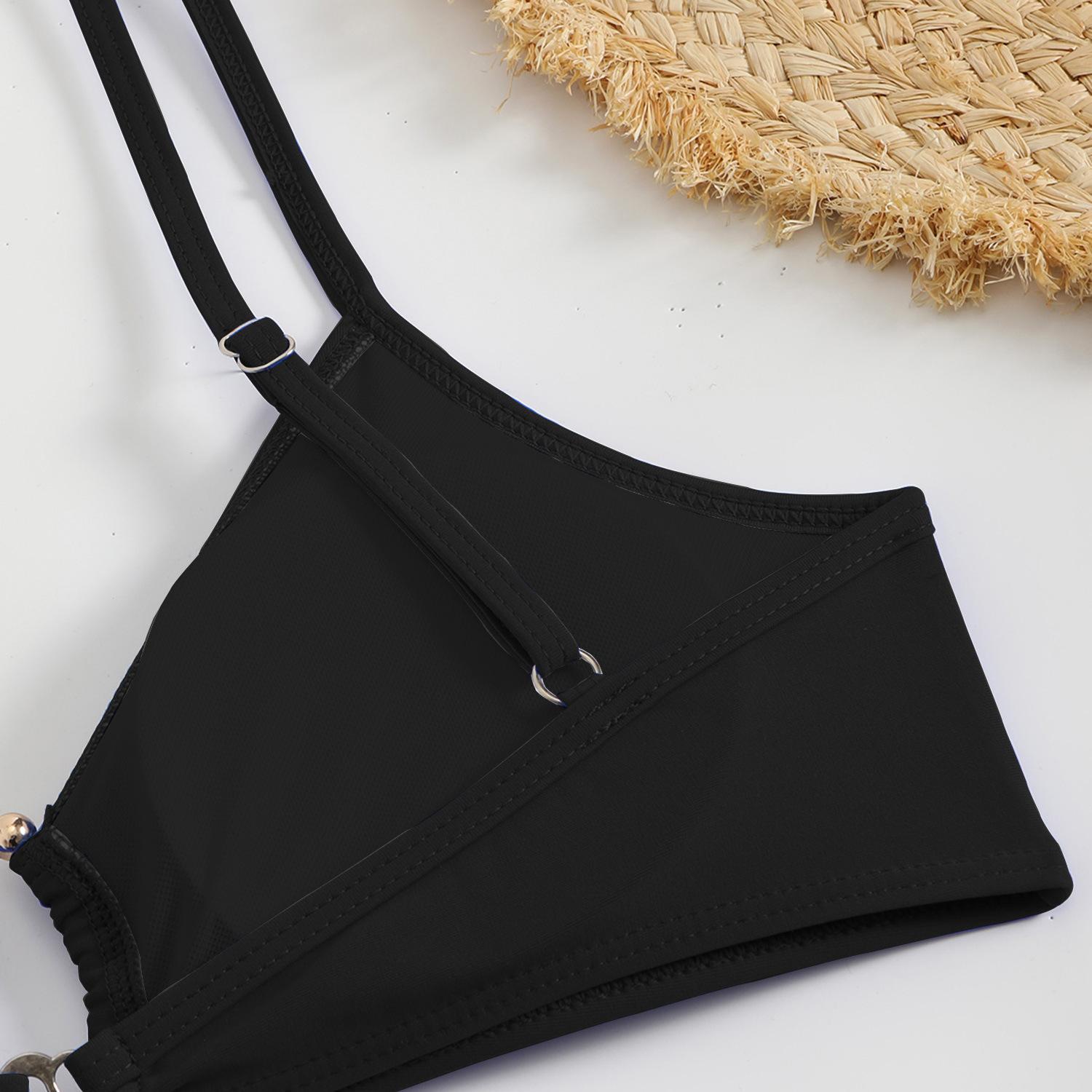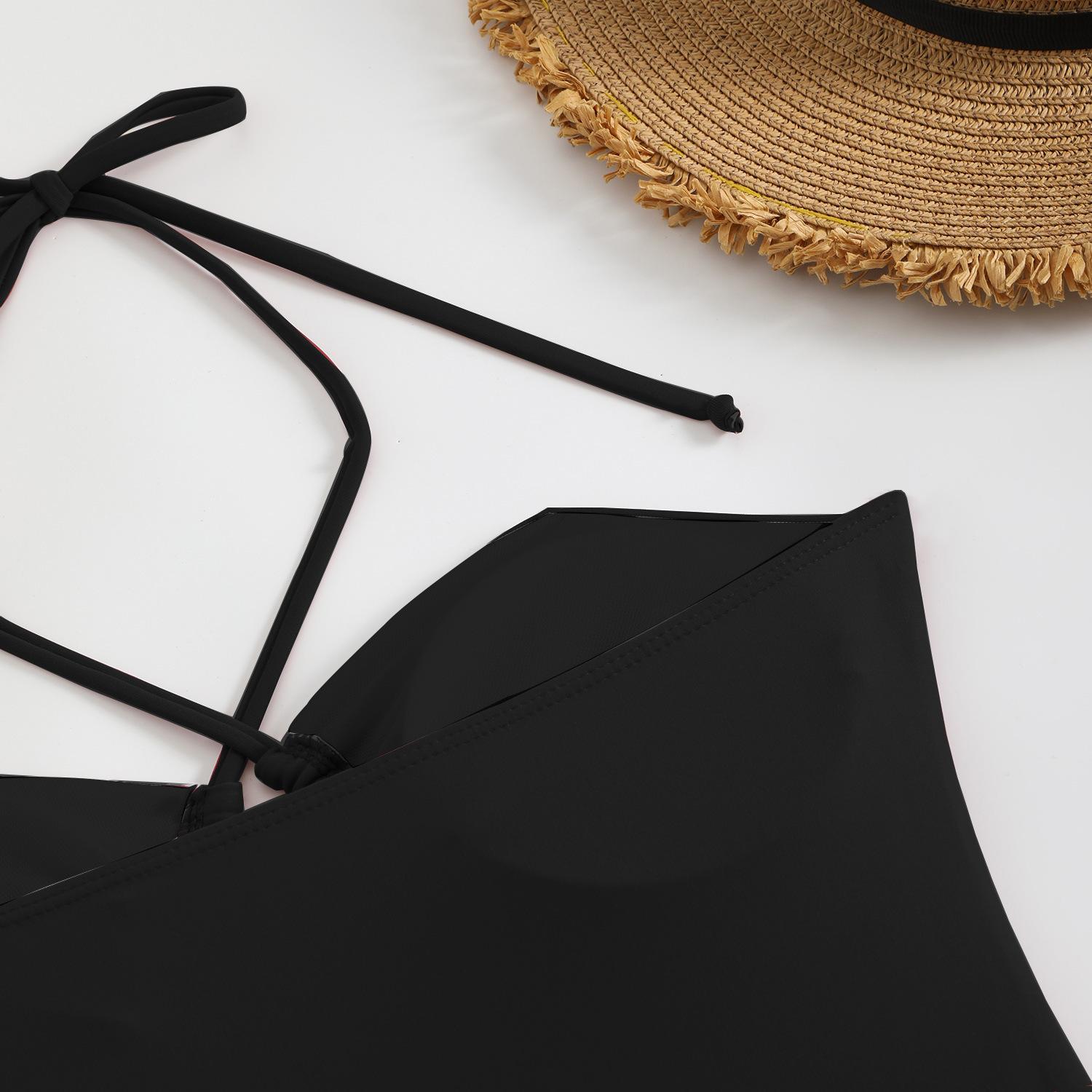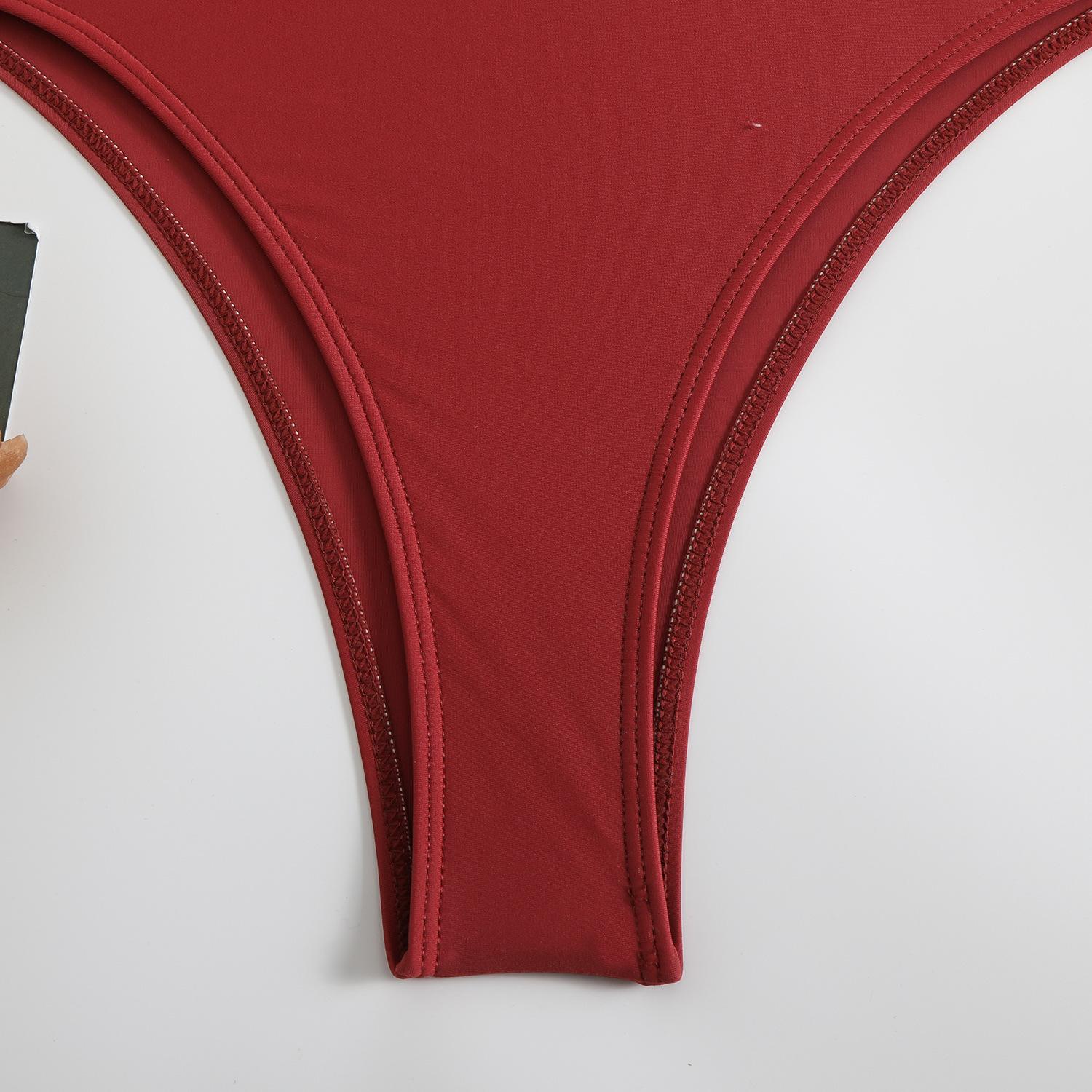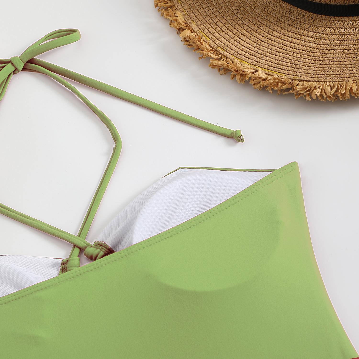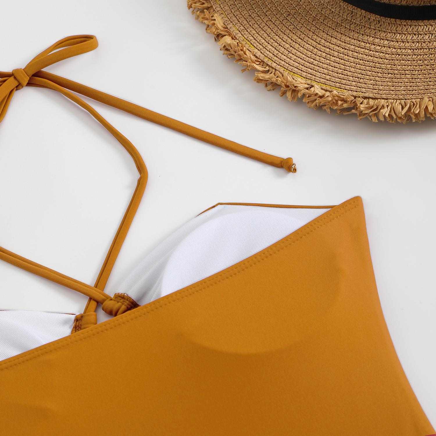 Traje de baño sexy de una pieza para mujer, 2025 Europa y Estados Unidos, comercio exterior transfronterizo, nuevo color sólido fruncido, cuello con cordones hueco, espalda descubierta