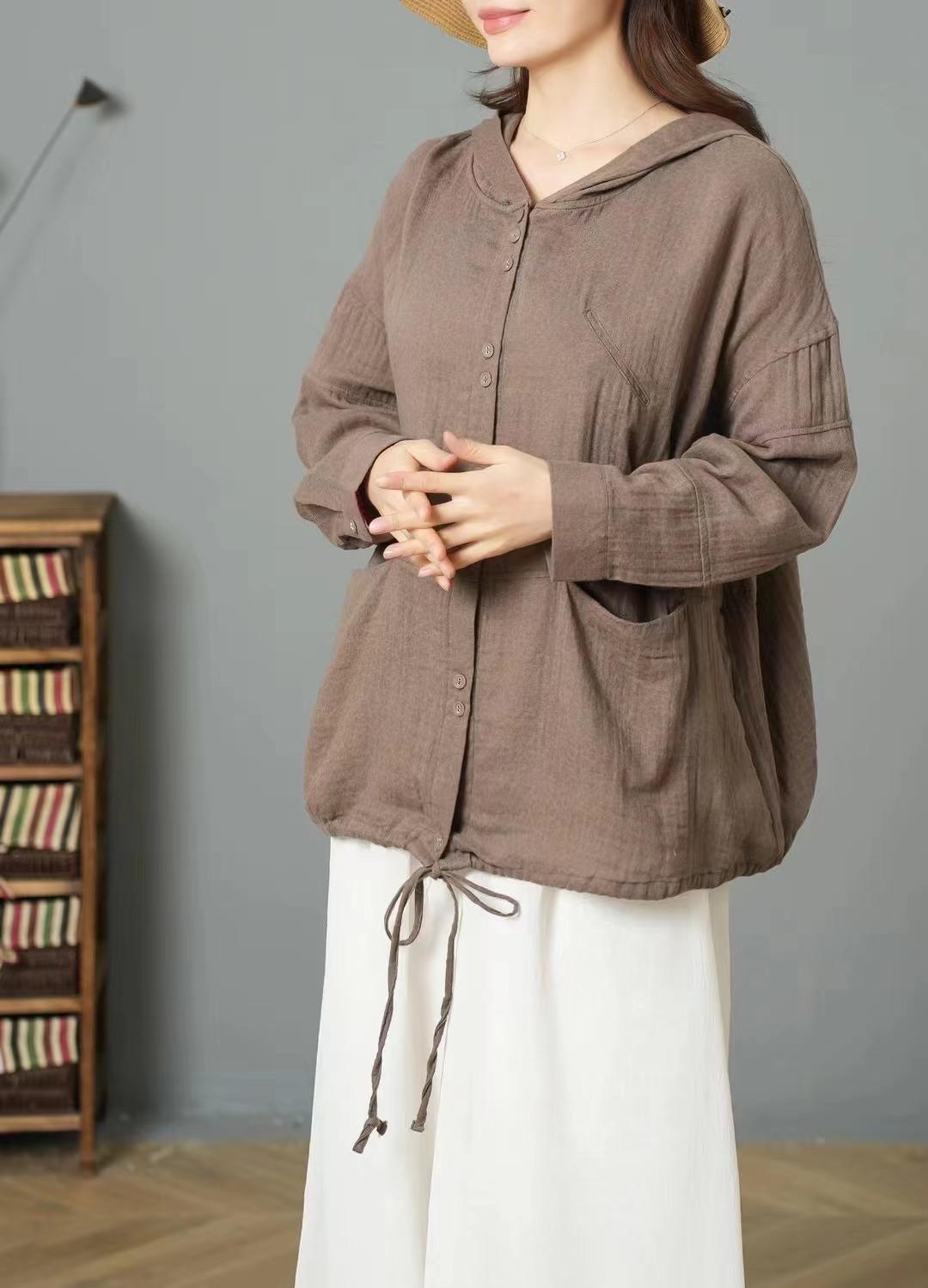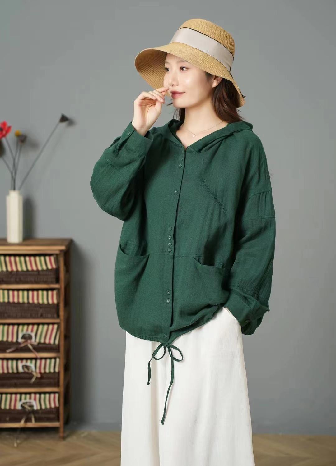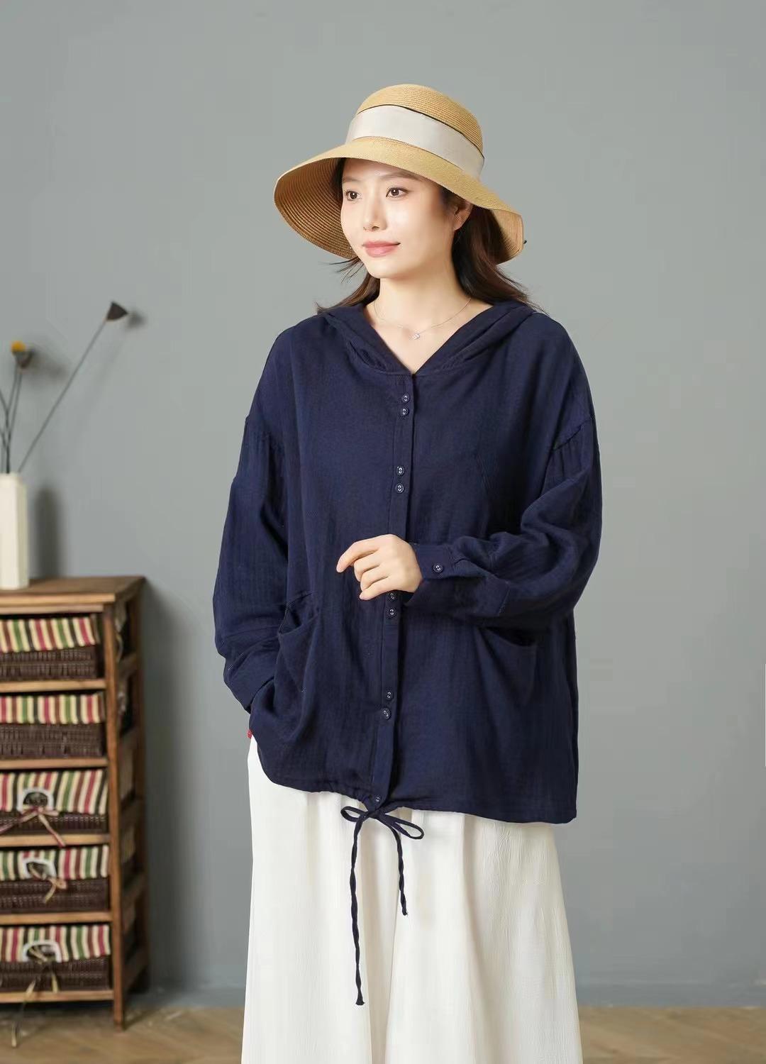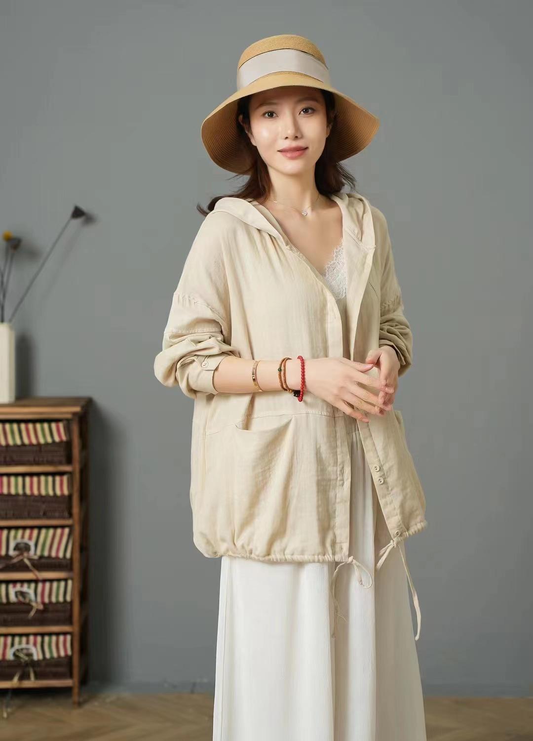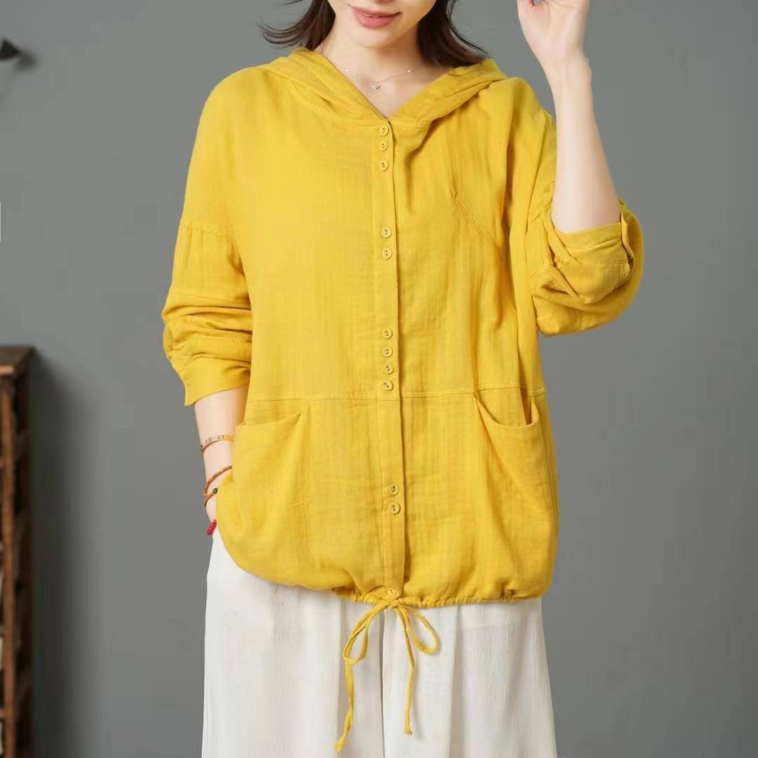 Chaqueta tipo cárdigan fina y versátil de algodón de color sólido para mujer, abrigo corto informal con capucha, primavera 2024
