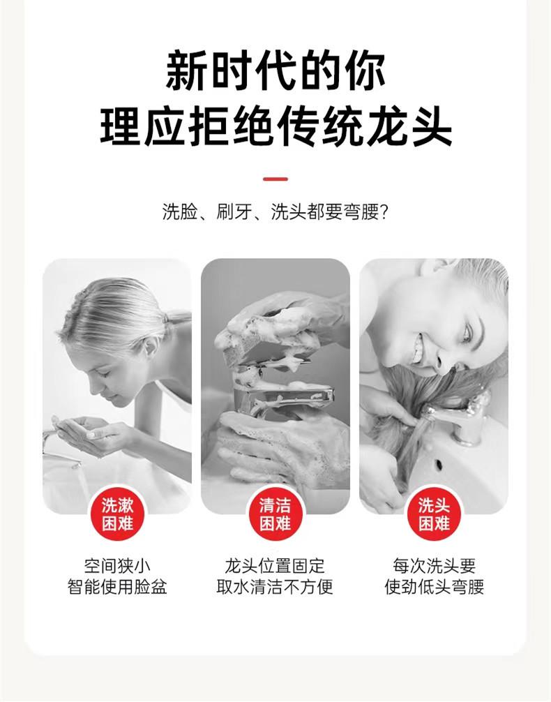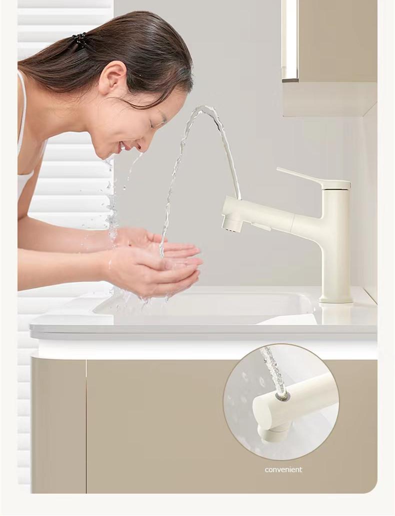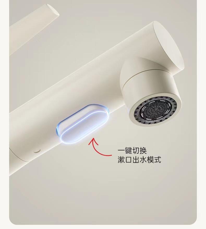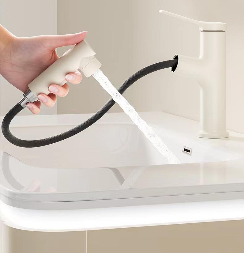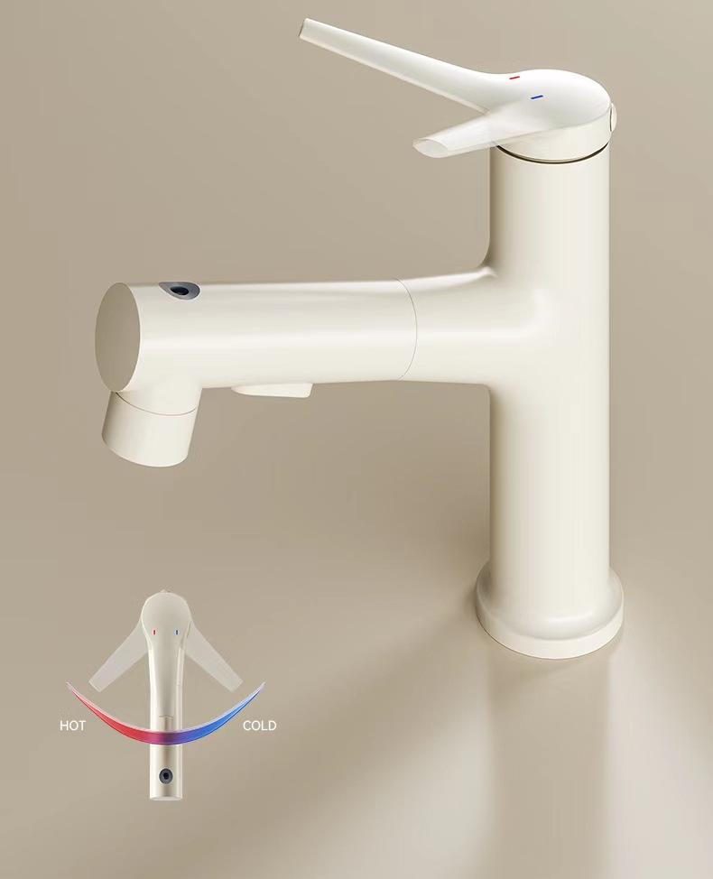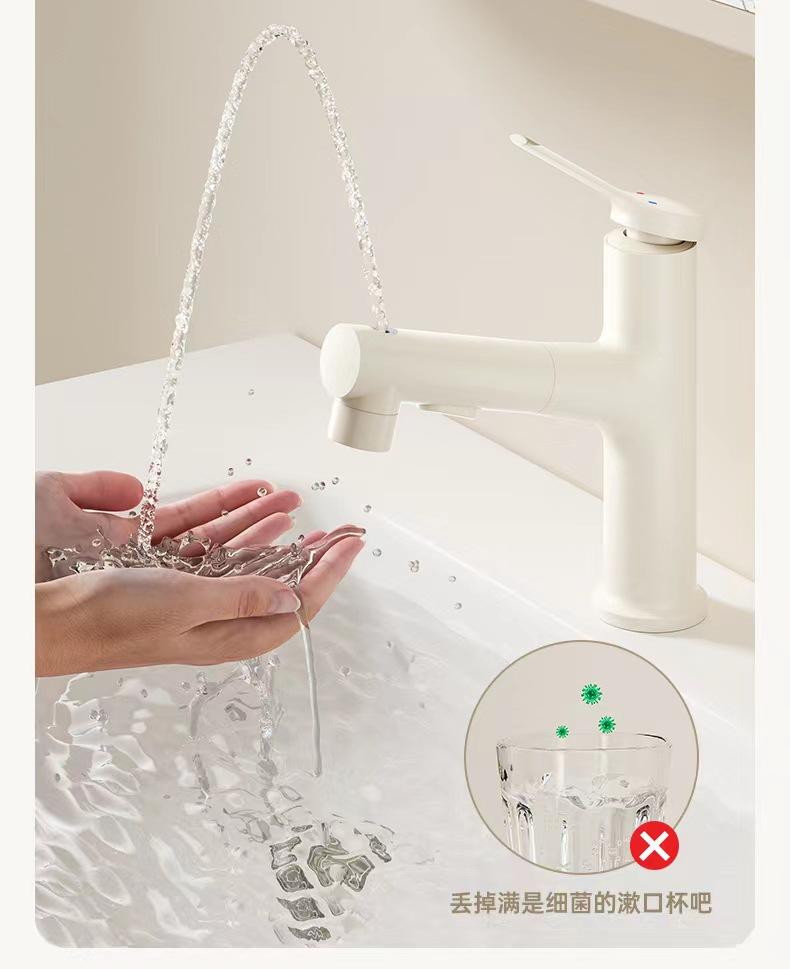 Lavabo de agua ascendente de color blanco leche, grifo de agua fría y caliente, lavabo extraíble, grifo con modo de salida múltiple
