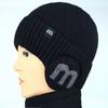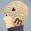 Gorro de invierno para hombre y mujer, con interior de terciopelo, grueso, de lana romboidal de colores mezclados, con orejeras de punto cálidas para exteriores
