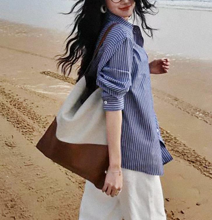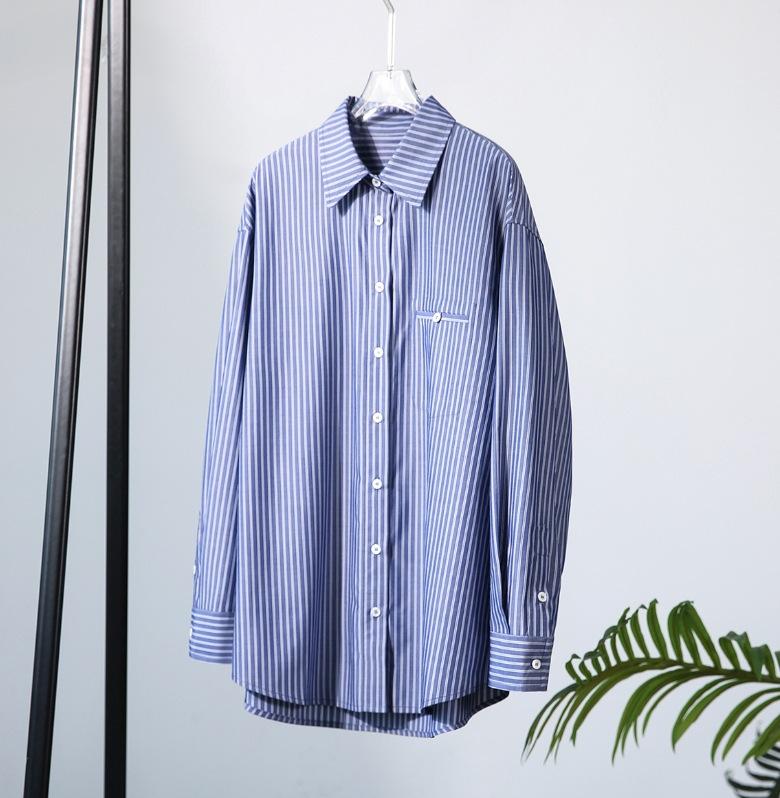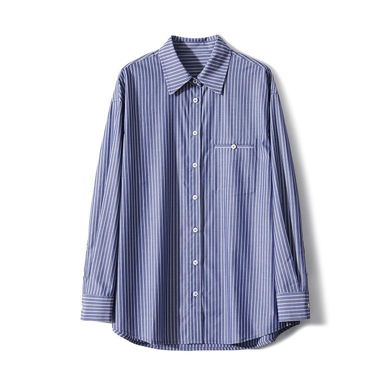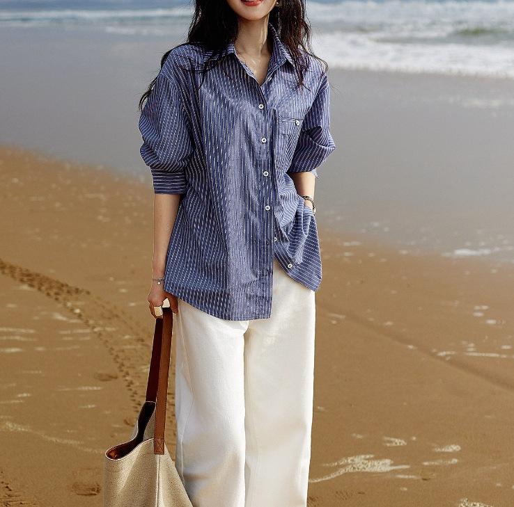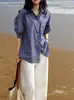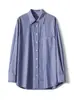 Camisa informal de manga larga a rayas azules y blancas para mujer, estilo elegante, para uso diario, primavera 2025