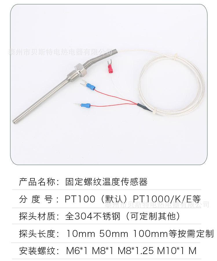sensor de temperatura pt100 resistencia térmica de platino impermeable tipo K tipo E sonda de temperatura PT100 termopar de rosca fija