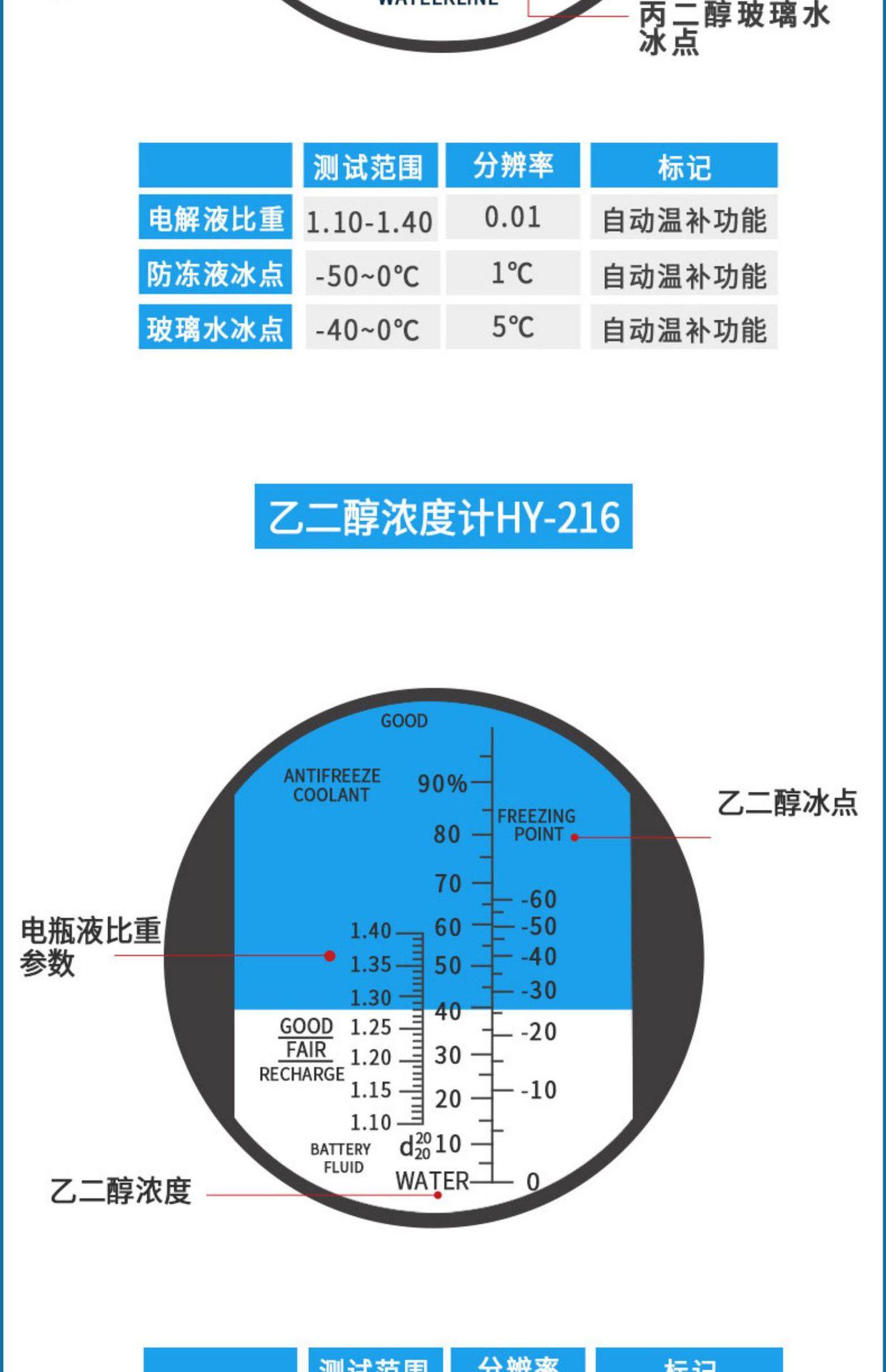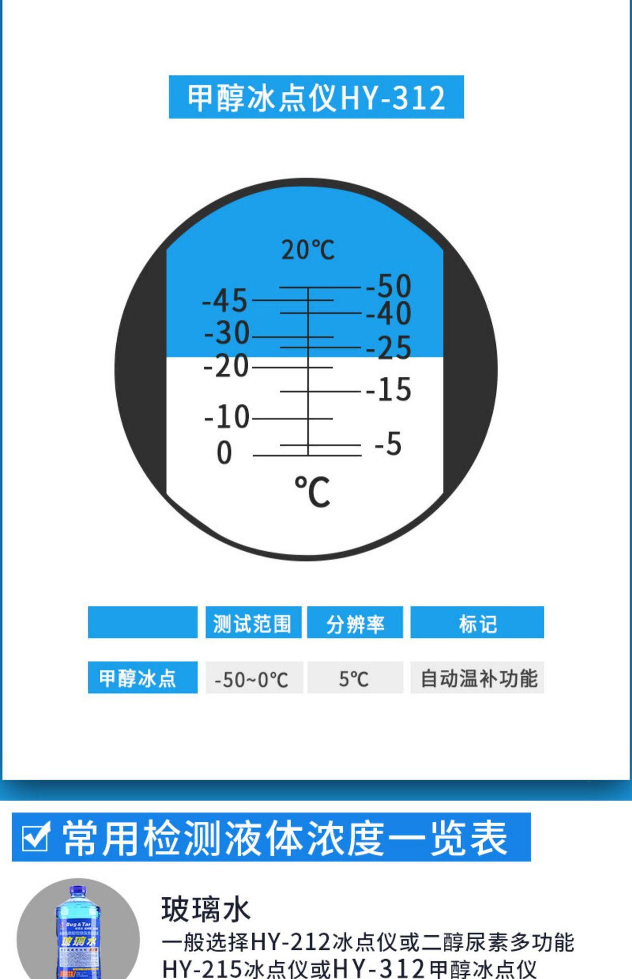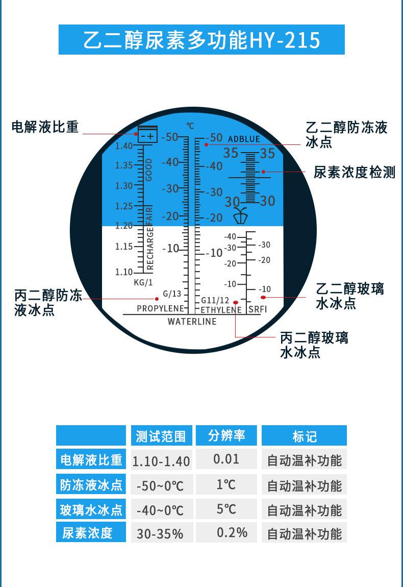 Probador de punto de congelación, probador de punto de congelación, hidrómetro de electrolito de batería, probador de punto de congelación de anticongelante, concentración de urea y metanol