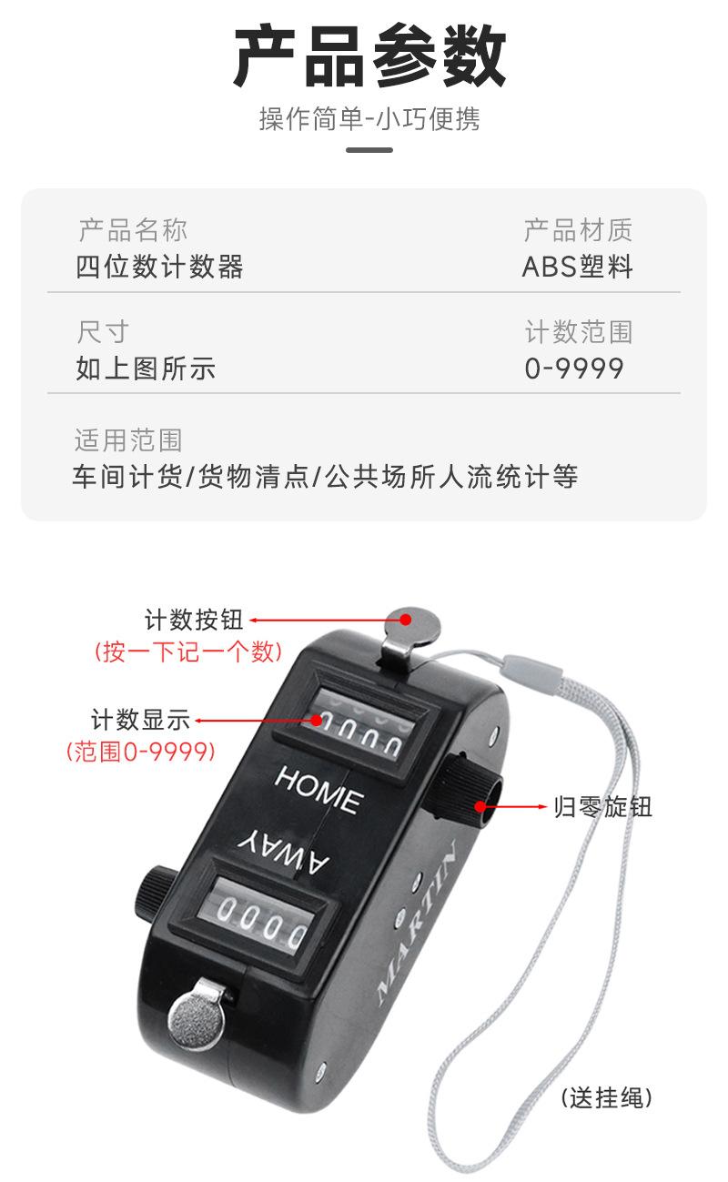 Contador de plástico negro de cuatro dígitos, de un solo cabezal, de dos cabezales, de metal, de flujo humano, de clic manual
