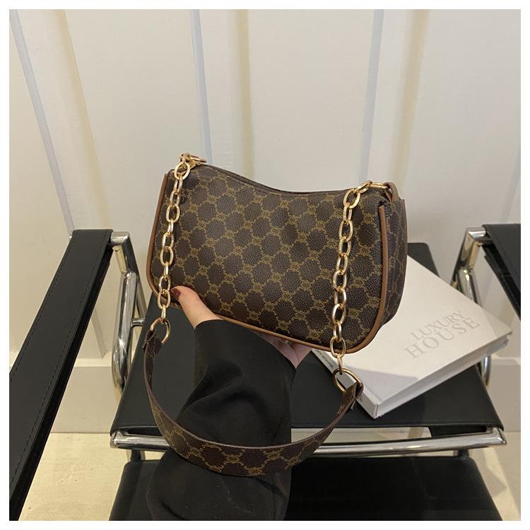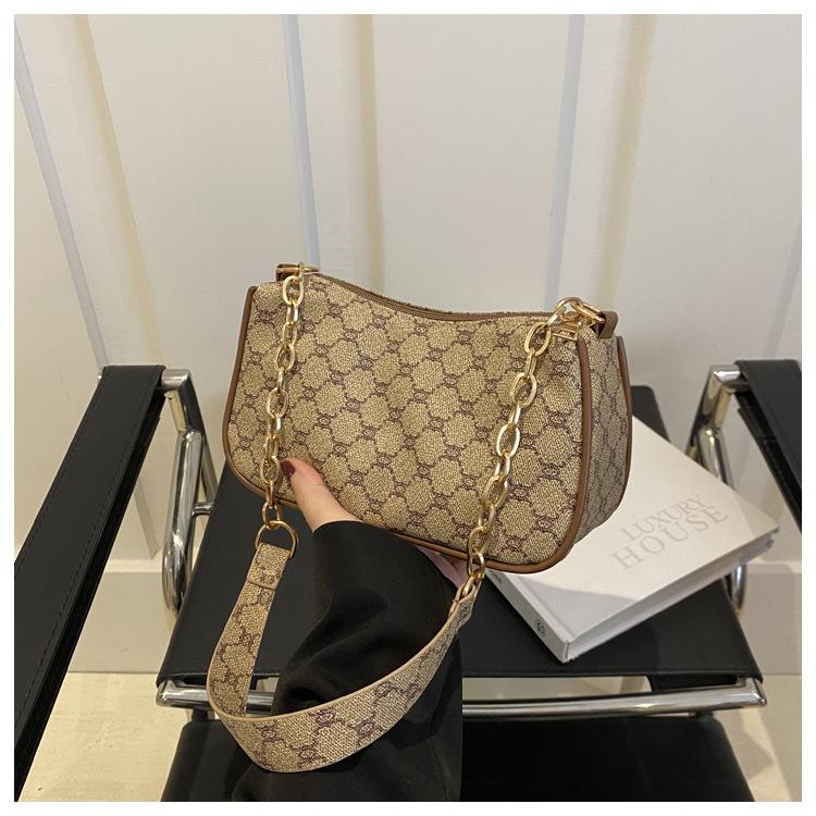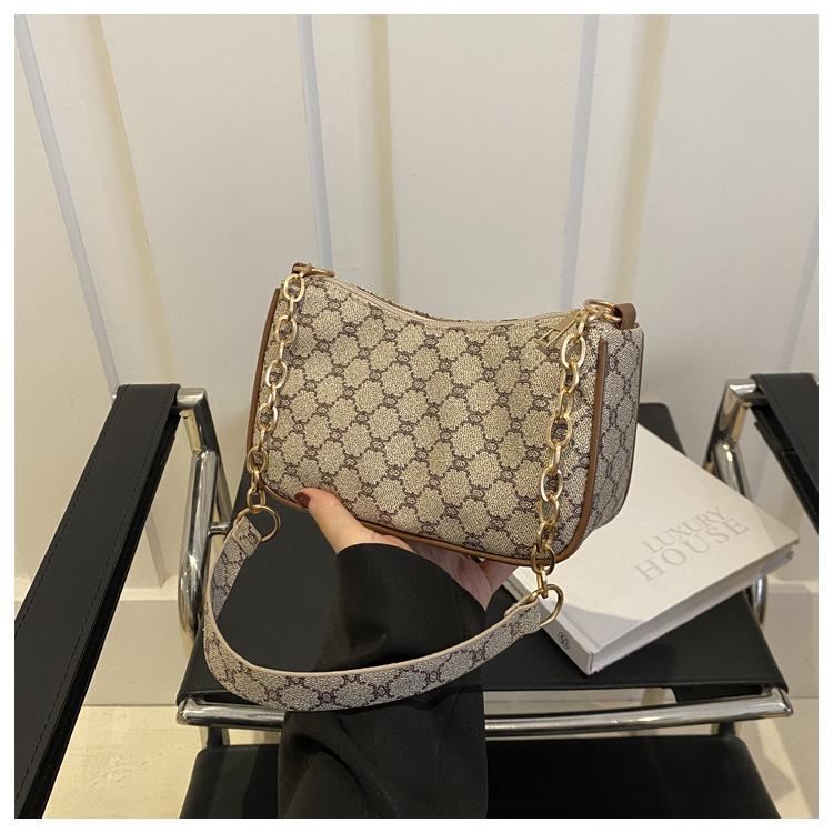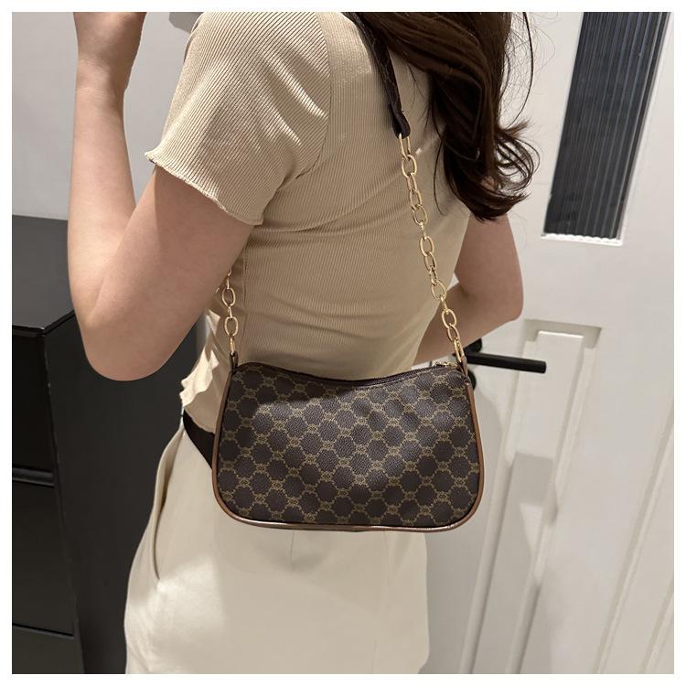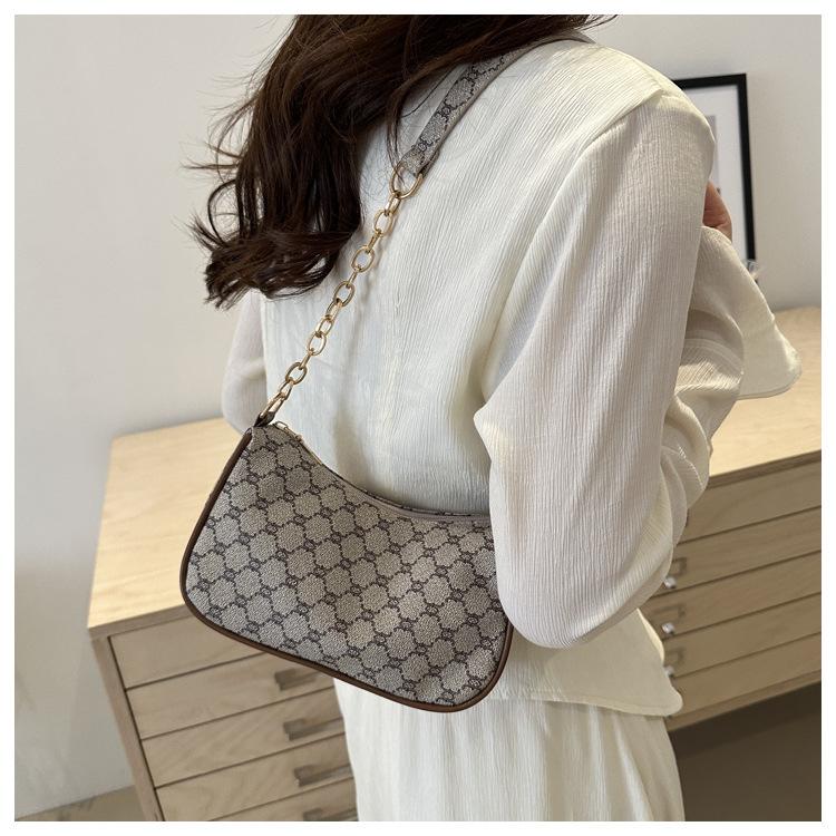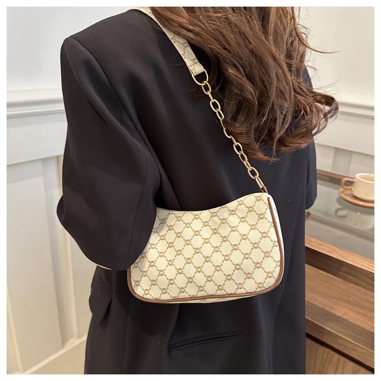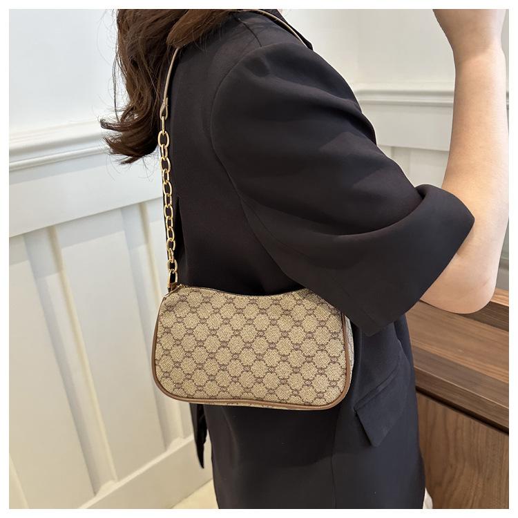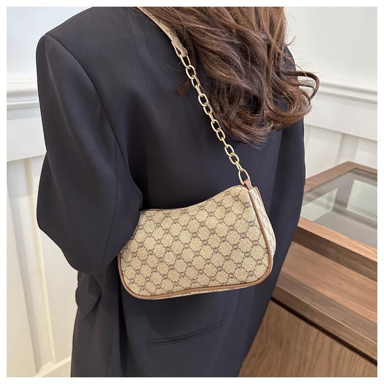 2024 Nuevo Otoño Estampado Moda Trendy Casual Retro Simple Cadena Hombro Axila Bolso Cuadrado Pequeño para Mujer