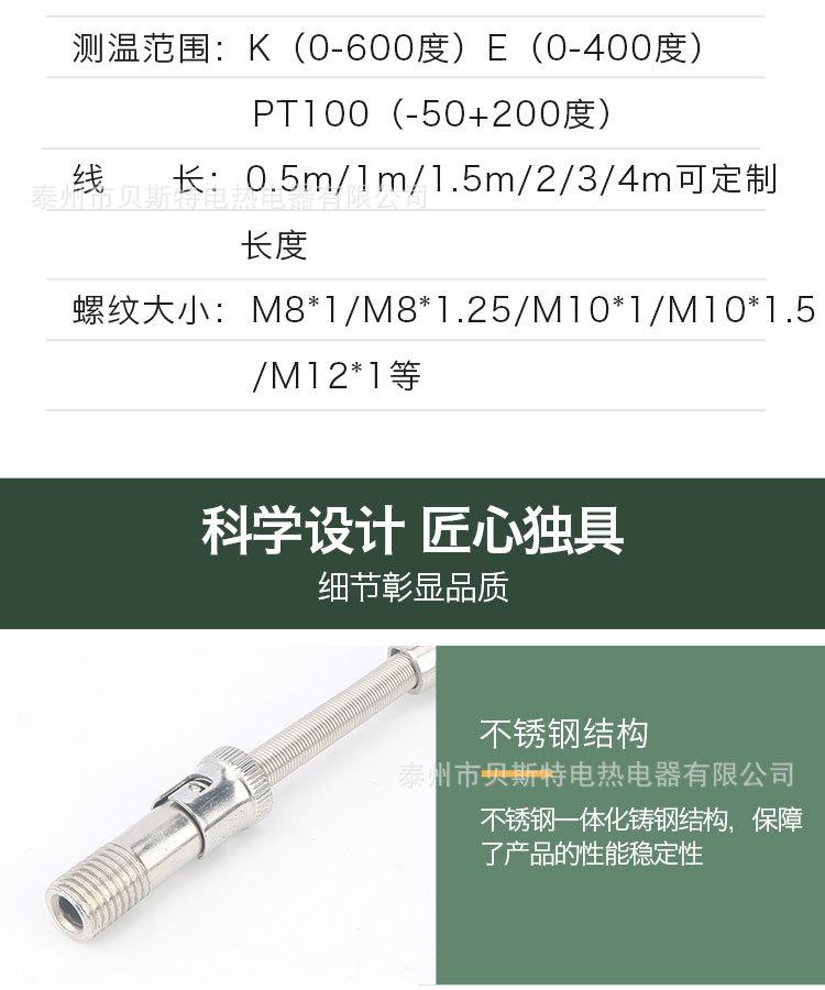 Mejor sensor de temperatura termopar tipo resorte WRNT-01 sonda de control de temperatura rosca tipo K tipo E resistencia térmica
