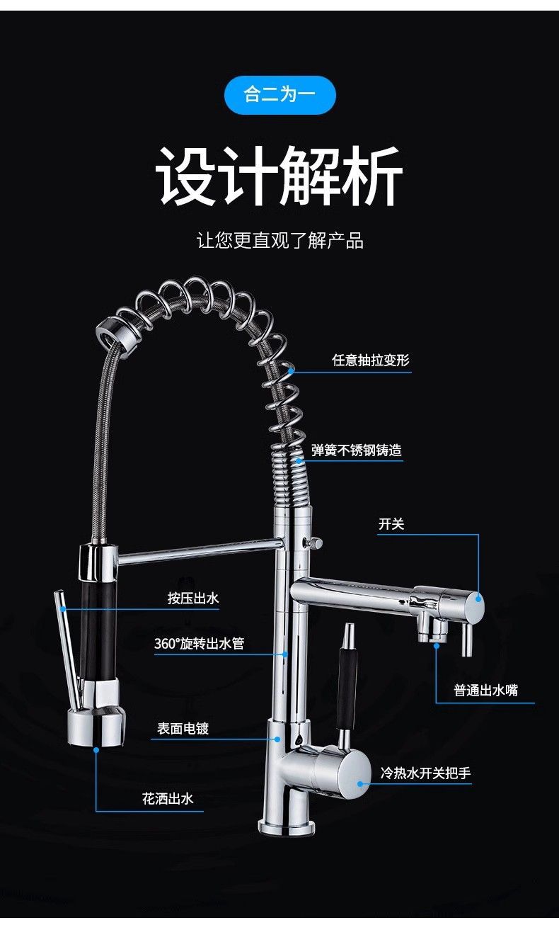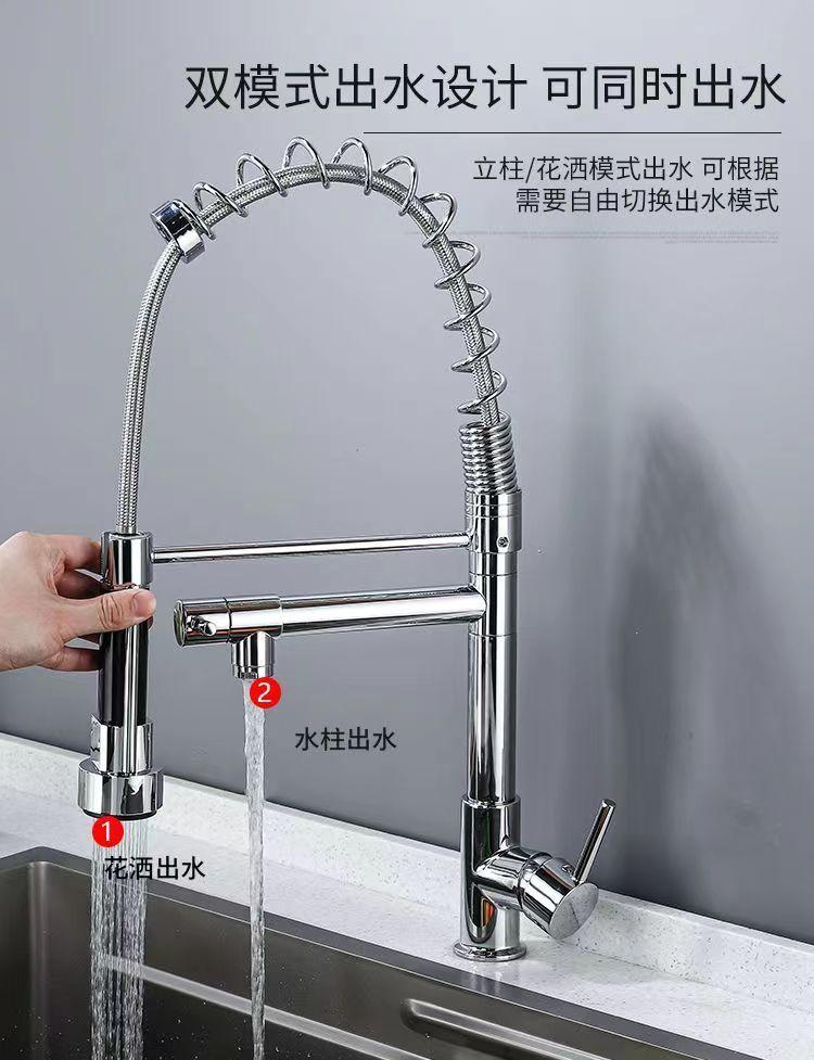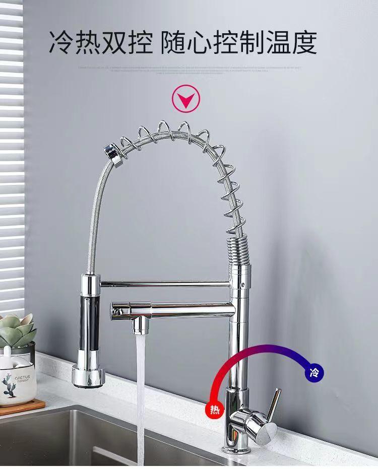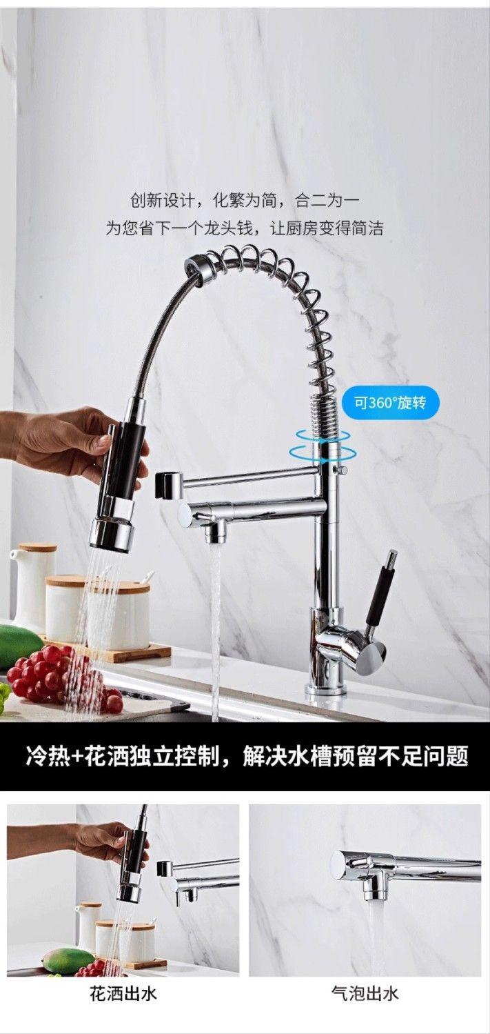Grifo de Cocina Multifuncional Resorte Extraíble Telescópico Giratorio Universal Frío y Caliente Fregadero Fregadero Doméstico