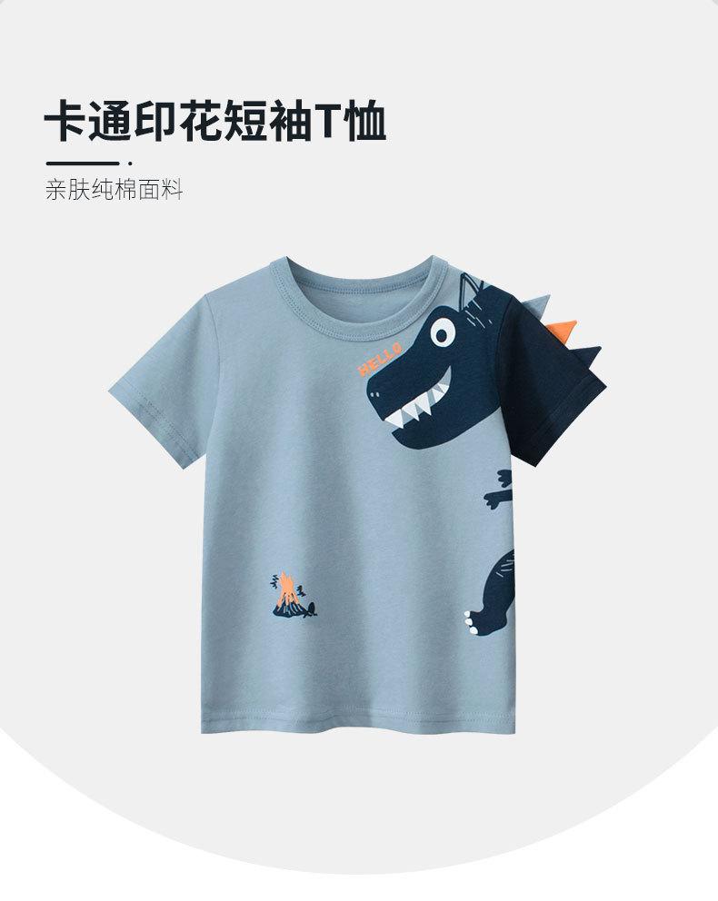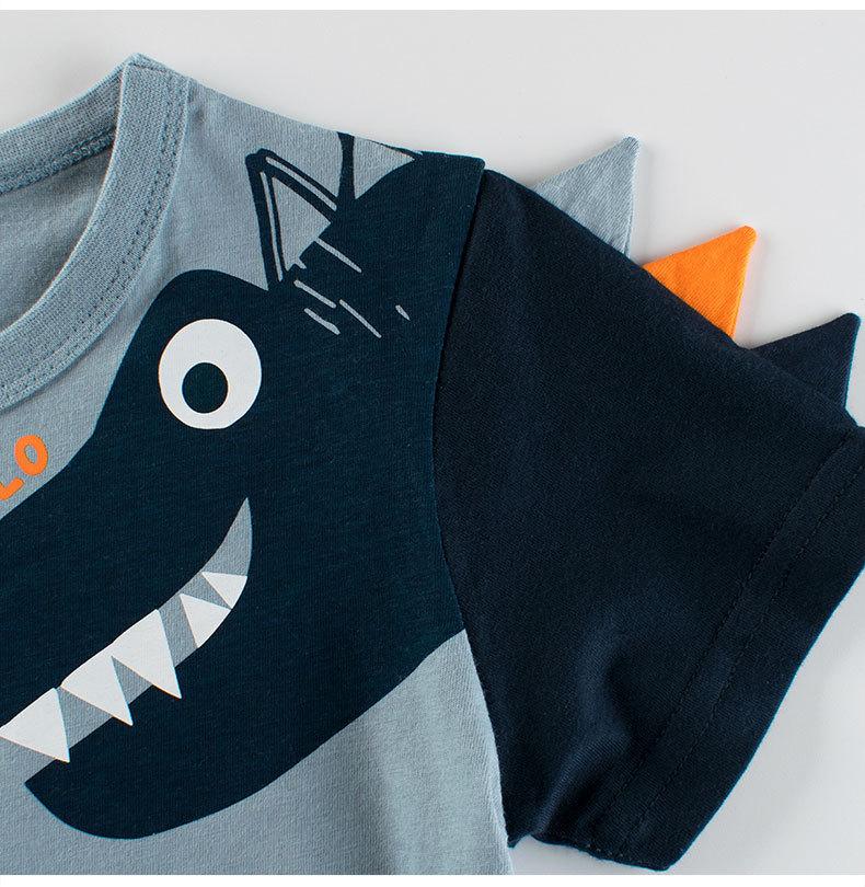 27kids ropa coreana para niños verano nuevo ropa de bebé dinosaurio niño caricatura camiseta manga corta generación en el extranjero